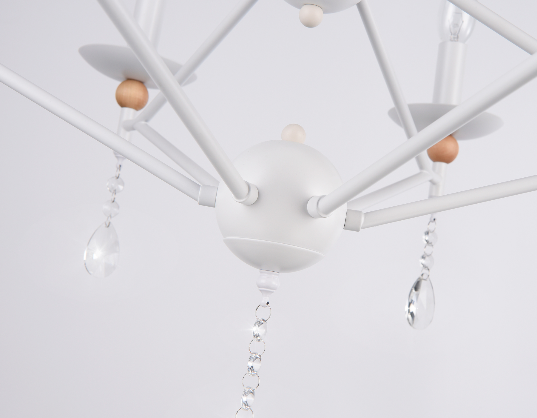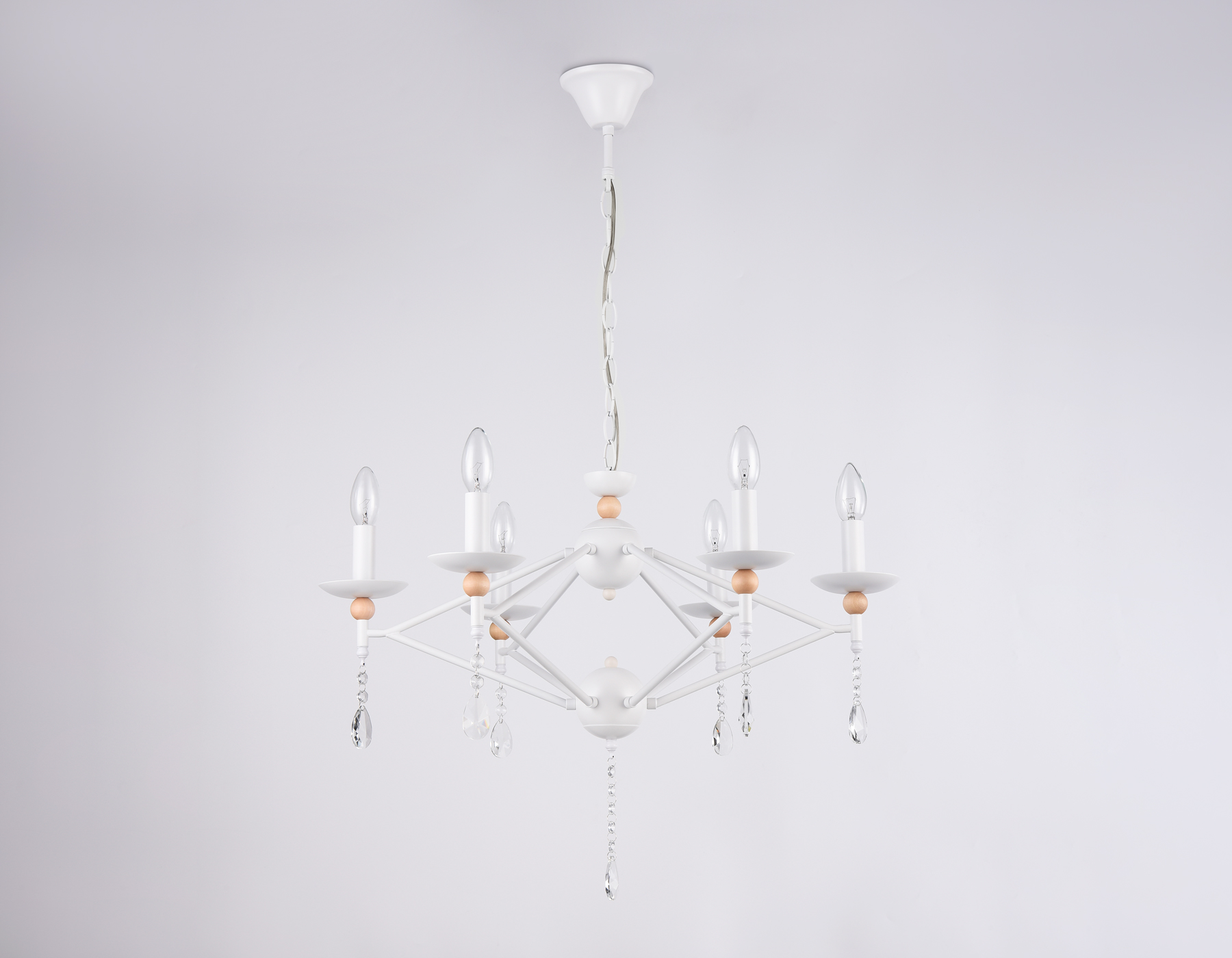Подвесной светильник из коллекции TRADITIONAL. Модель TR9596 представлена в стиле классика. Светильник выполнен из белого металлического каркаса, с деревянным и стекляным декором. Для данной модели подойдут лампы с цоколем Е14. Светильник будет прекрасным дополнением в любом помещении.