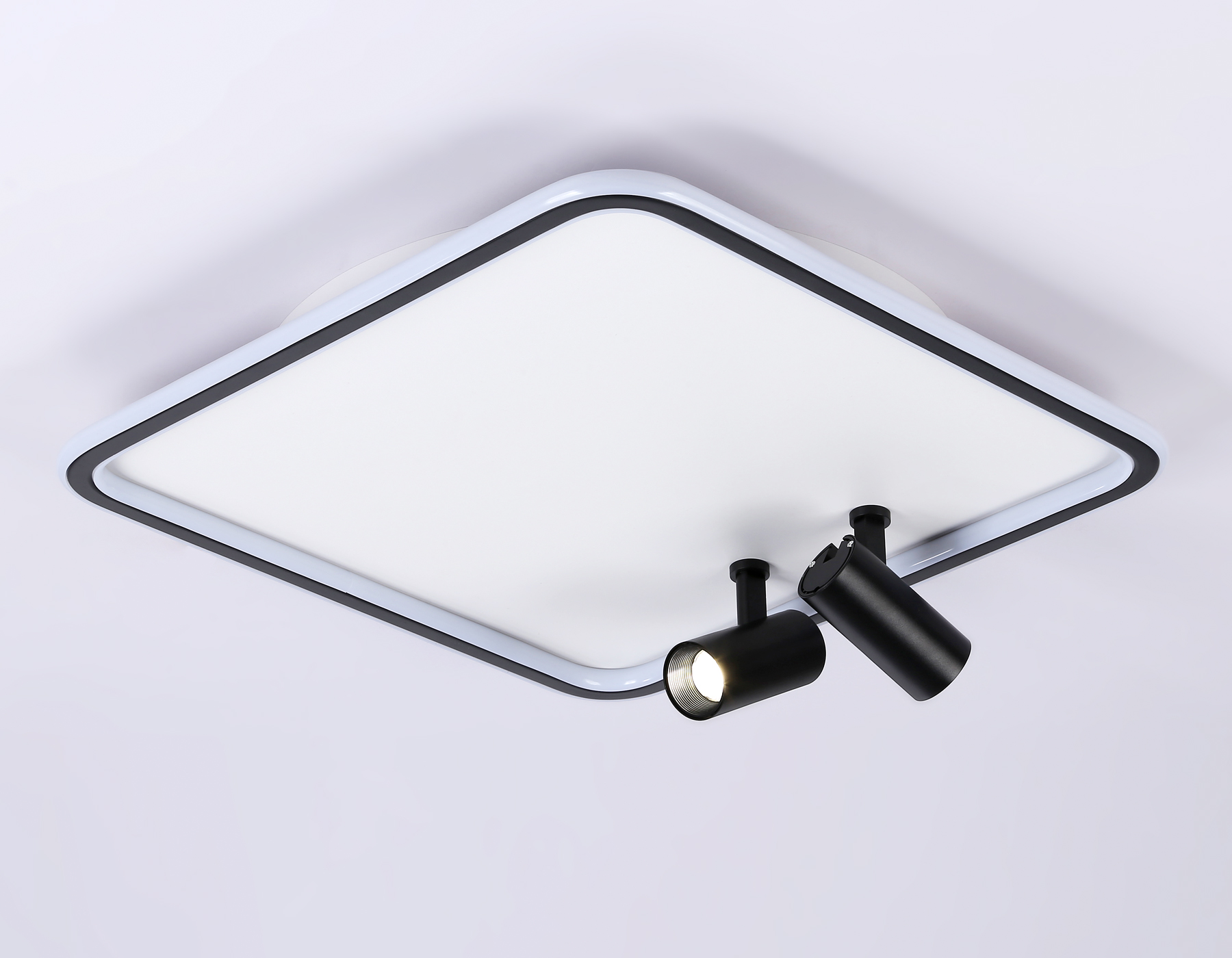 Потолочный светодиодный светильник с пультом и поворотным спотом, коллекция COMFORT. Модель FL5115 представлена в современном стиле техно. Светильник выполнен из металла в белом и черном цвете. Эта модель оснащена встроенными светодиодами, благодаря чему вы забудете о замене дополнительных ламп. Так же с помощью инфракрасного пульта вы сможете регулировать цветовую температуру и яркость освещения. Данная модель подходит для натяжных потолков и будет прекрасным дополнением в любом помещении.