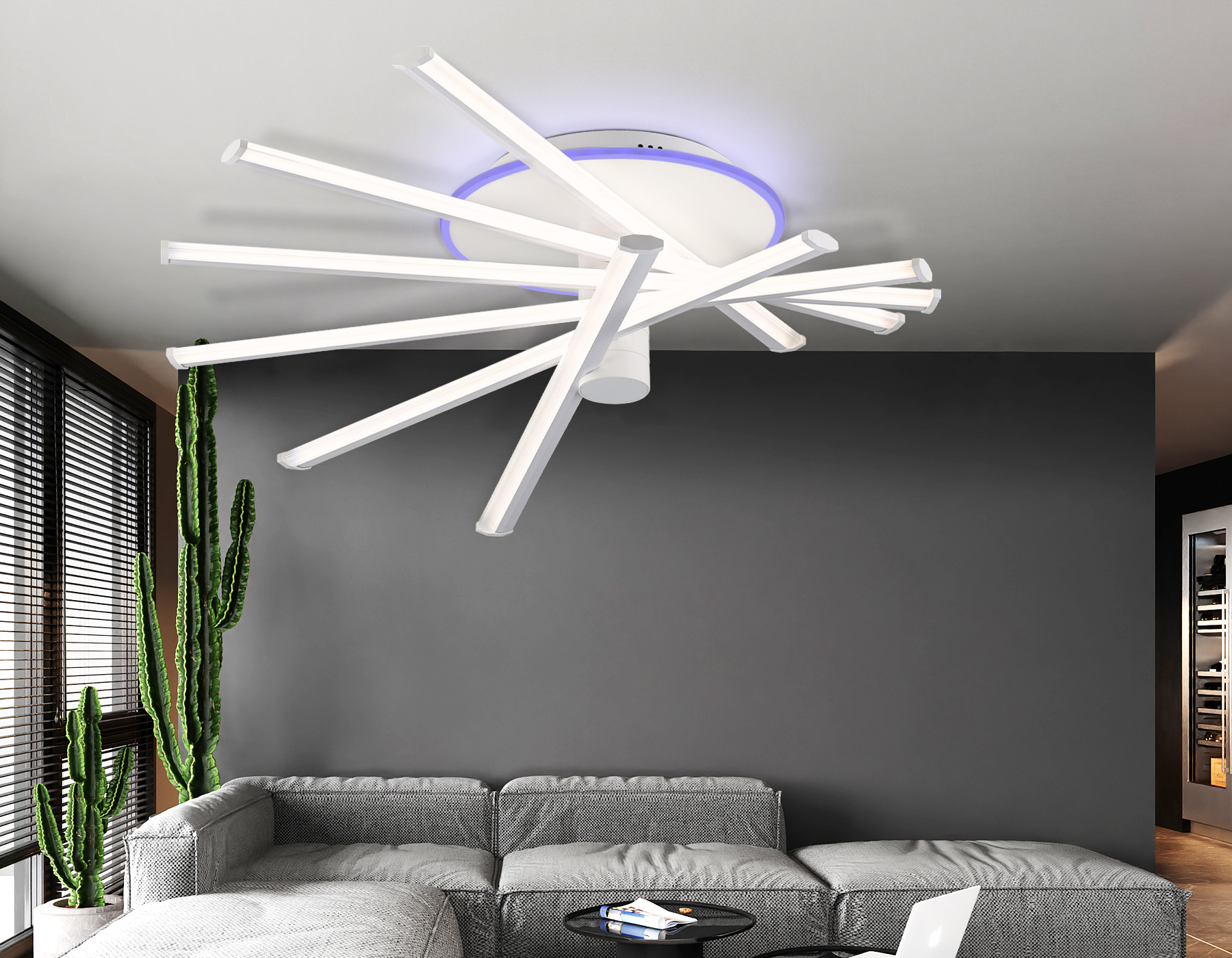 Потолочный светодиодный светильник с пультом управления из серии COMFORT. Модель FL6231 представлена в современном стиле хай-тек и техно. Светильник выполнен в белом цвете. Изготовлен из высококачественного пластика и метала и декорирован двойным рассеивателем белого и прозрачного цвета. Светильник имеет поворотный механизм, благодаря которому вы можете создать эксклюзивное освещение. Данная модель оснащена RGB подсветкой. В конструкцию этого светильника уже встроены светодиоды, что исключает поиск или замену дополнительных ламп. С помощью инфракрасного о пульта вы сможете регулировать цветовую температуру, яркость освещения и ночной режим. Эти светильники подходят для натяжных потолков и будут прекрасным дополнением в гостиной, спальне или детской комнате.