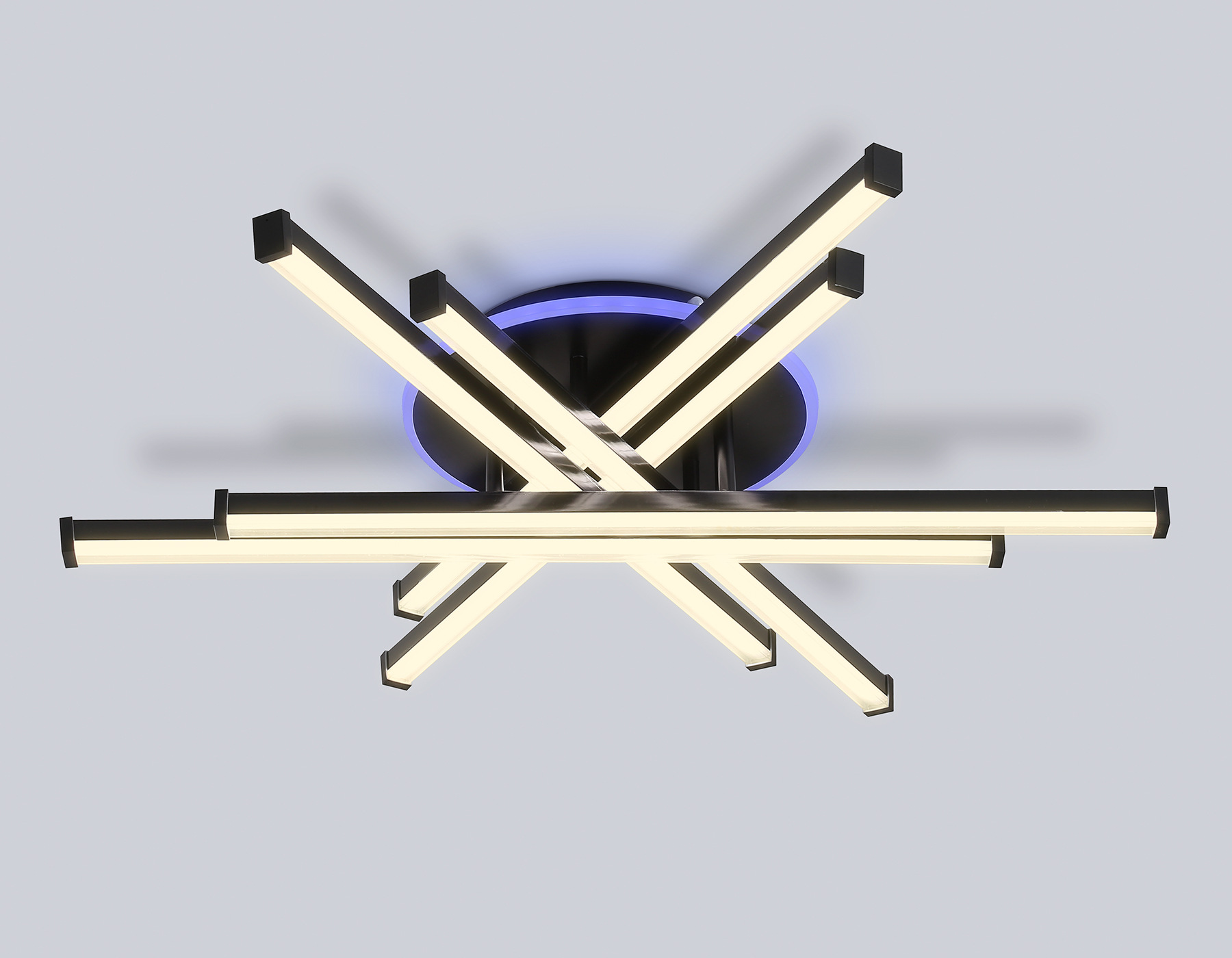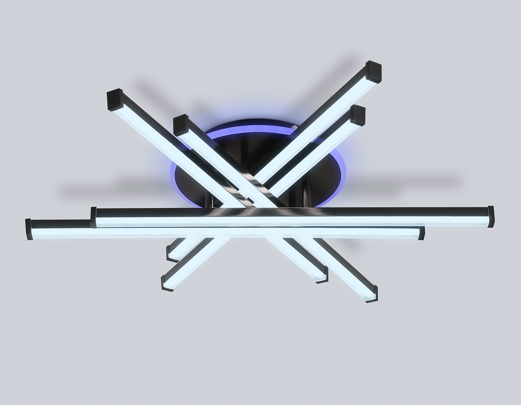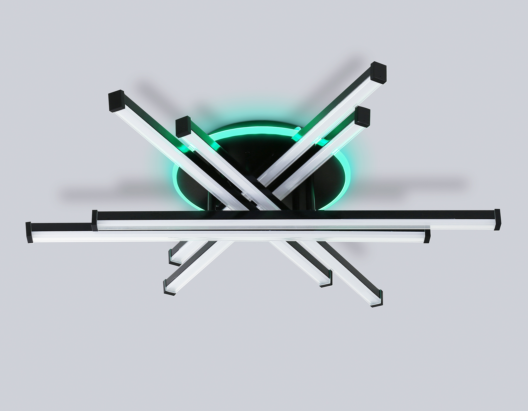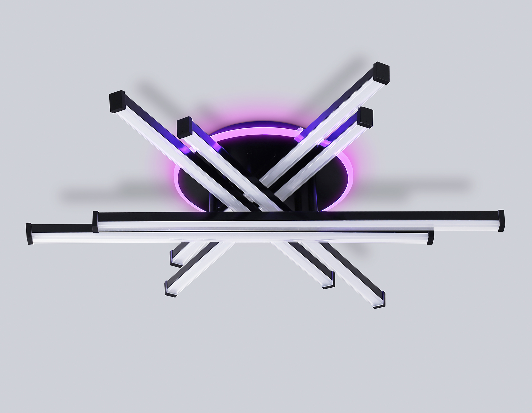 Потолочный светодиодный светильник с пультом управления из серии COMFORT. Модель FL6272 представлена в современном стиле хай-тек и техно. Светильник выполнен в черном цвете. Изготовлен из высококачественного пластика и метала и декорирован двойным рассеивателем белого и прозрачного цвета. Данная модель оснащена RGB подсветкой. В конструкцию этого светильника уже встроены светодиоды, что исключает поиск или замену дополнительных ламп. С помощью инфракрасного о пульта вы сможете регулировать цветовую температуру, яркость освещения и ночной режим. Эти светильники подходят для натяжных потолков и будут прекрасным дополнением в гостиной, спальне или детской комнате.