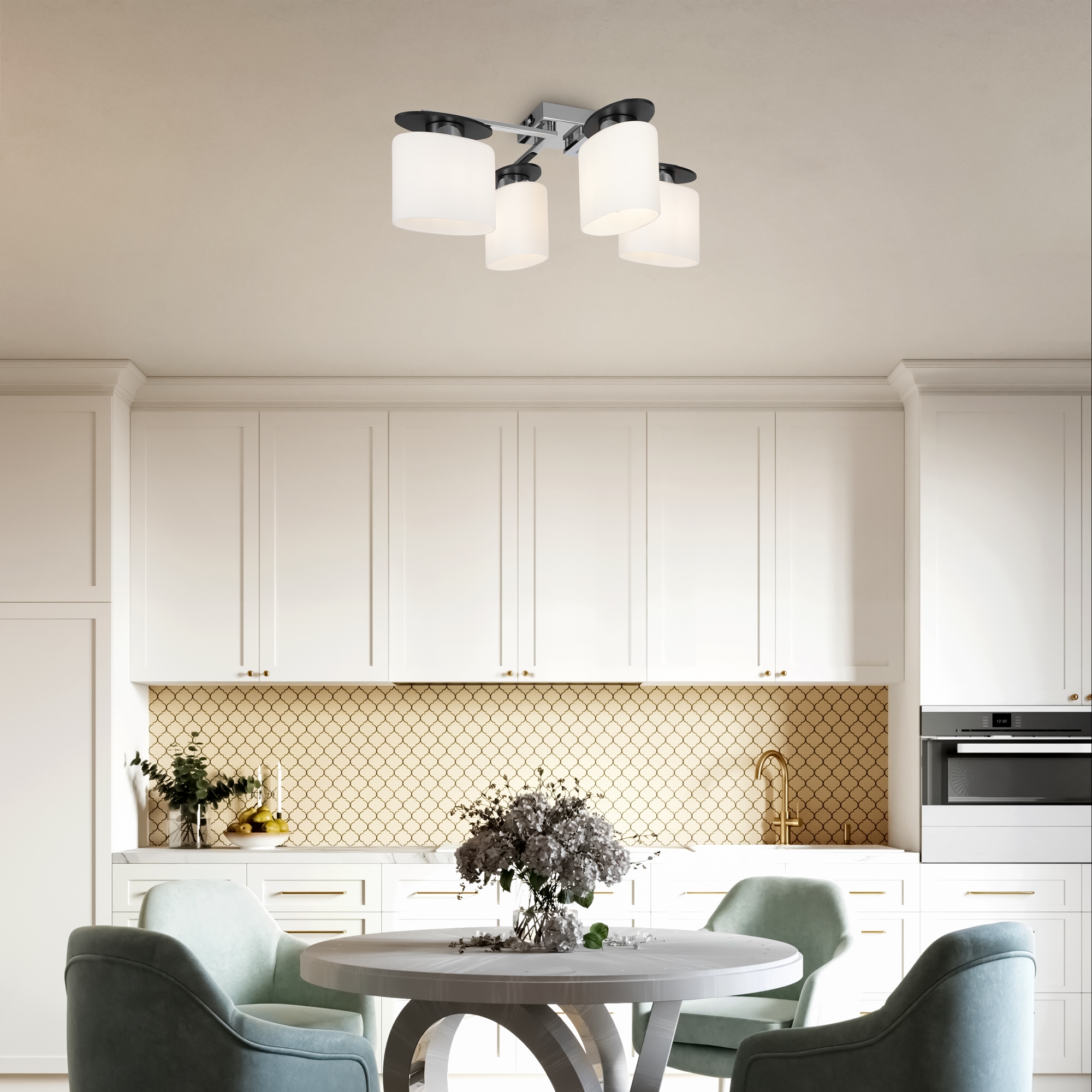 Светильники серии выполнены в современном стиле, арматура сделана из металла, а плафоны – из матового стекла. Благодаря своей небольшой высоте светильники Bice подходят для невысоких помещений.