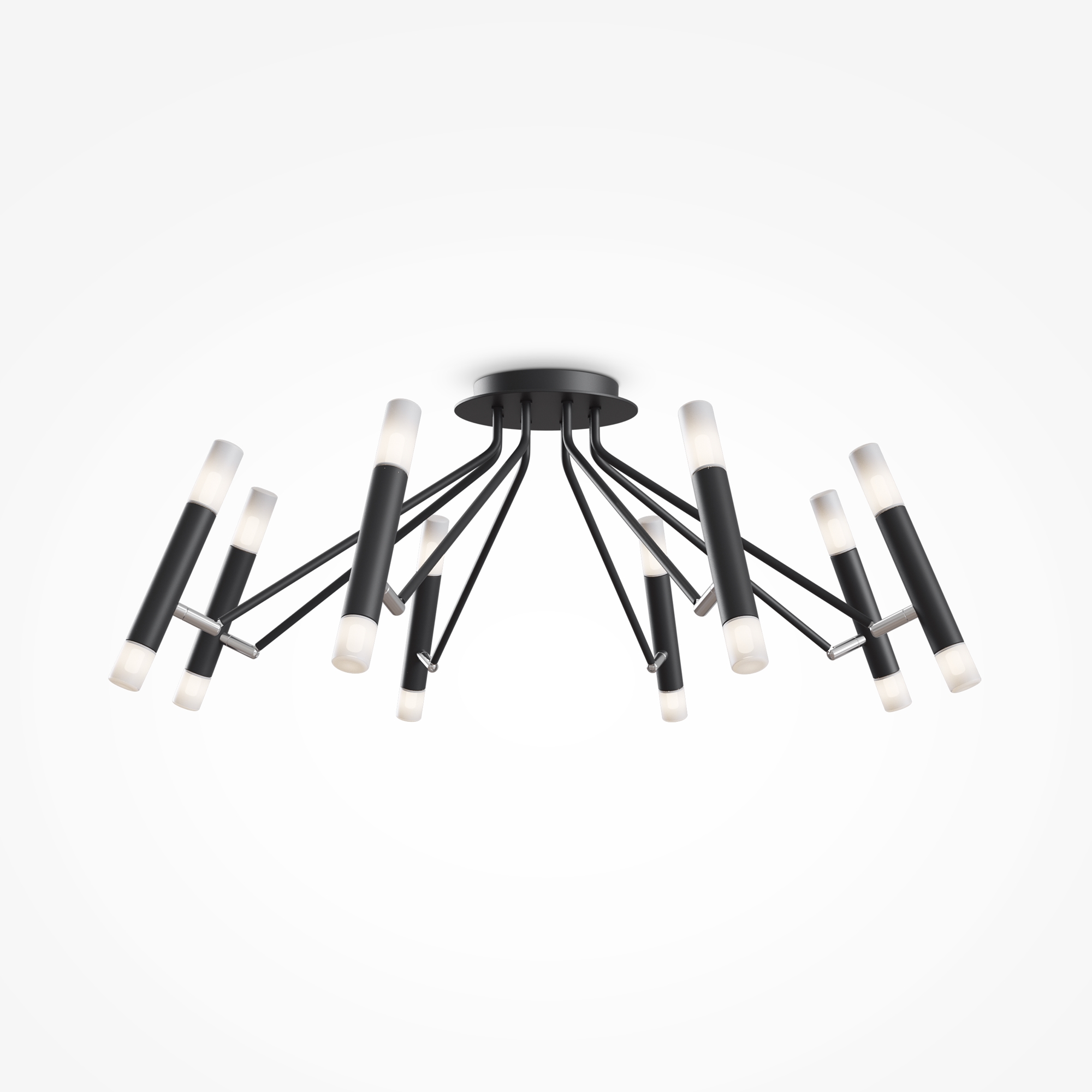 Металлическая арматура в матовом черном цвете. Цилиндрические плафоны вра щаются на 340° по горизонтали и 90° по вертикали. Возможность видоизменять дизайн светильника. Рассеиватель из матового стекла.