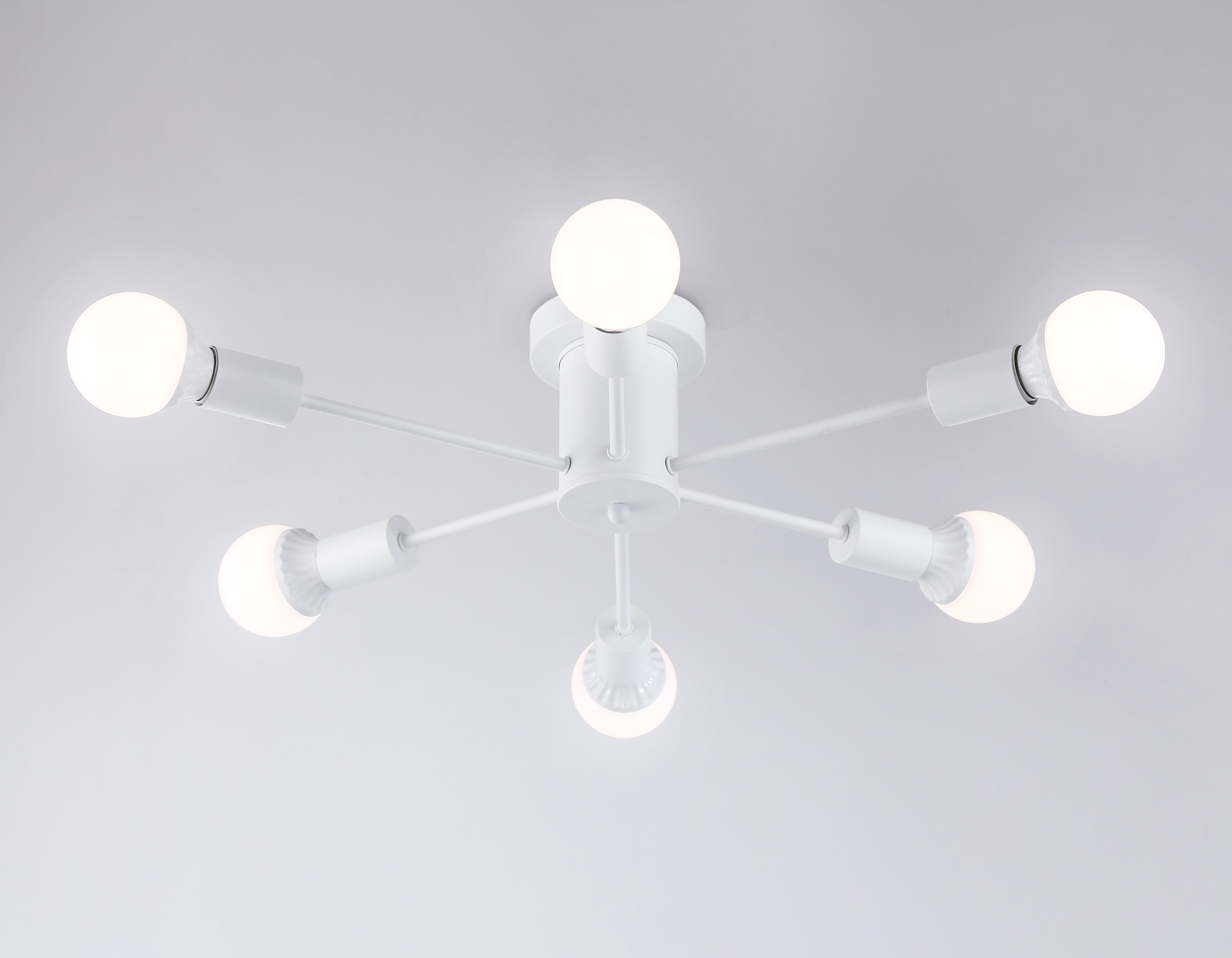 Потолочный светильник из коллекции TRADITIONAL. Модель TR80401 представлена в современном стиле лофт. Светильник выполнен из белого металлического каркаса. Для данной модели подойдут лампы с цоколем Е27. Светильник будет прекрасным дополнением в любом помещении.