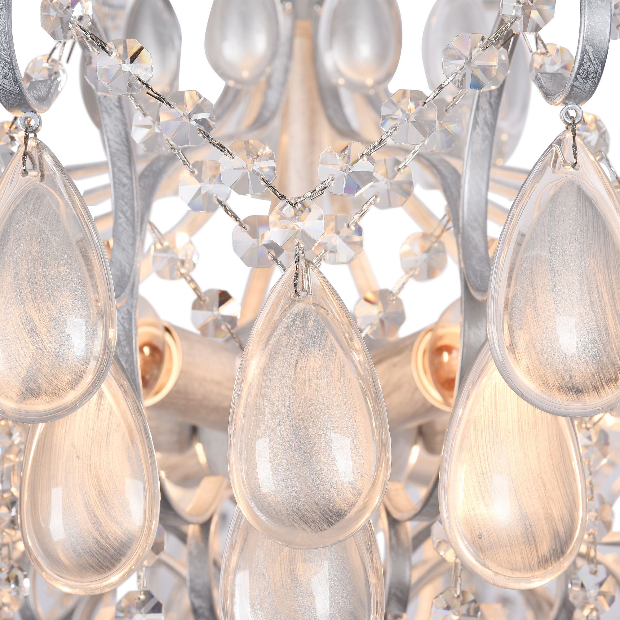 Серия Charbol заслуживает особого внимания благодаря интересному цветовому совмещению отделки арматуры, каплевидным кристаллам из акрила, а также бусинам, которые образуют живописную композицию.