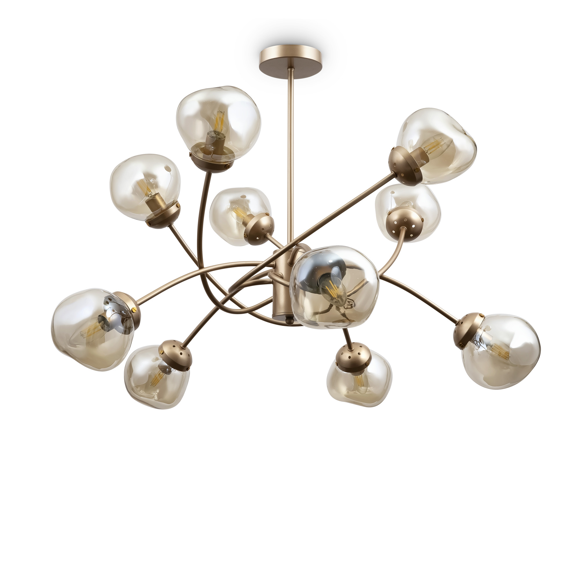 Динамика, скорость и ритм шумного мегаполиса отражены в сложных формах светильников Volani. Такой эффект достигается за счет конструктивных особенностей: рожки изогнуты под необычным углом, переплетаются друг с другом. Дизайнерское решение выгодно и с практической точки зрения: разнонаправленный световой поток обеспечивает равномерное и яркое освещение. Арматура из металла цвета матового золота идеально гармонирует с янтарными стеклянными плафонами. Теплая цветовая гамма добавит интерьеру уюта. Оригинальная форма плафонов поддерживает идею динамичного, движущегося дизайна. Наличие в серии люстр на 6, 8 и 10 ламп позволяет выбрать оптимальную мощность и интенсивность подсветки, исходя из размеров помещения. Завершить и дополнить световую инсталляцию поможет бра. Для интерьеров в стиле лофт, хай-тек, минимализм, mid-century modern серия Volani станет идеальным решением.