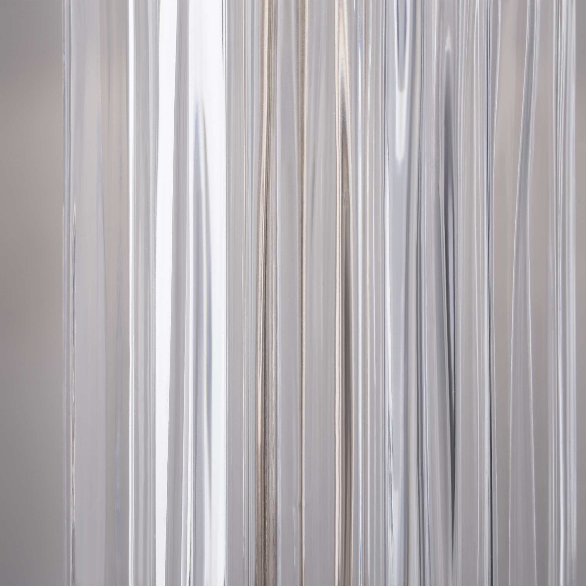 Металлическое основание - дополнено скульптурным литым стеклом в трех оттенках: прозрачном, дымчатом и пудрово-розовом. Хлопковый абажур белого цвета. Цоколь Е27.
