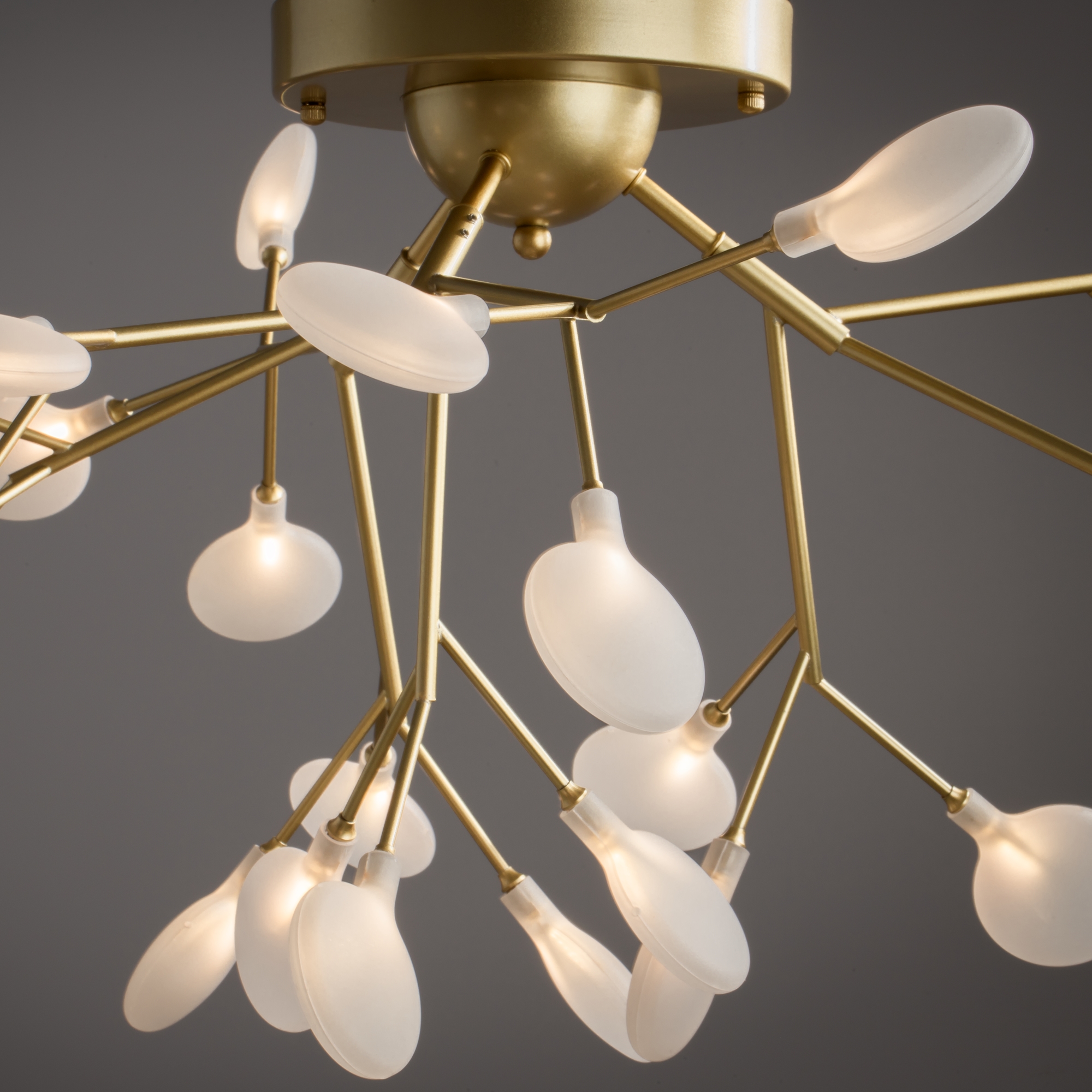 Материал арматуры – металл. Оттенки – черный, белый. Стеклянные плафоны оригинальной формы. Трендовый флористический дизайн. Источник света – лампа G4.