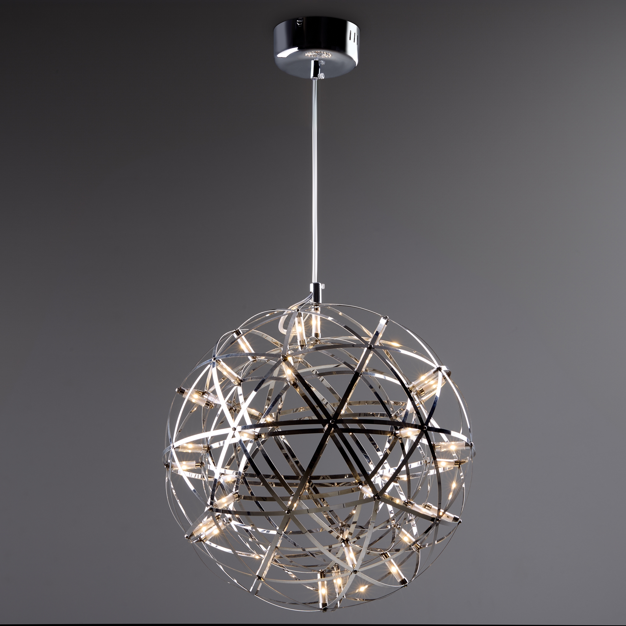 Серия Amber представляет воздушные светильники-сферы, выполненные в трендовом стиле хай-тек. Хромированная металлическая арматура и плафон, сотканный из переплетающихся лент, создают запоминающийся современный образ. Встроенные светодиоды экономят электроэнергию и красиво подсвечивают сферу. В выключенном состоянии светильник выглядит как абстрактное произведение искусства и является полноправной частью декоративного ансамбля интерьера. Серию составляют подвесы различного диаметра – их можно использовать по отдельности, а можно комбинировать в группы. Для обстановки в стиле хай-тек, минимализм, лофт, помещений кафе и ресторанов светильник станет идеальным решением.