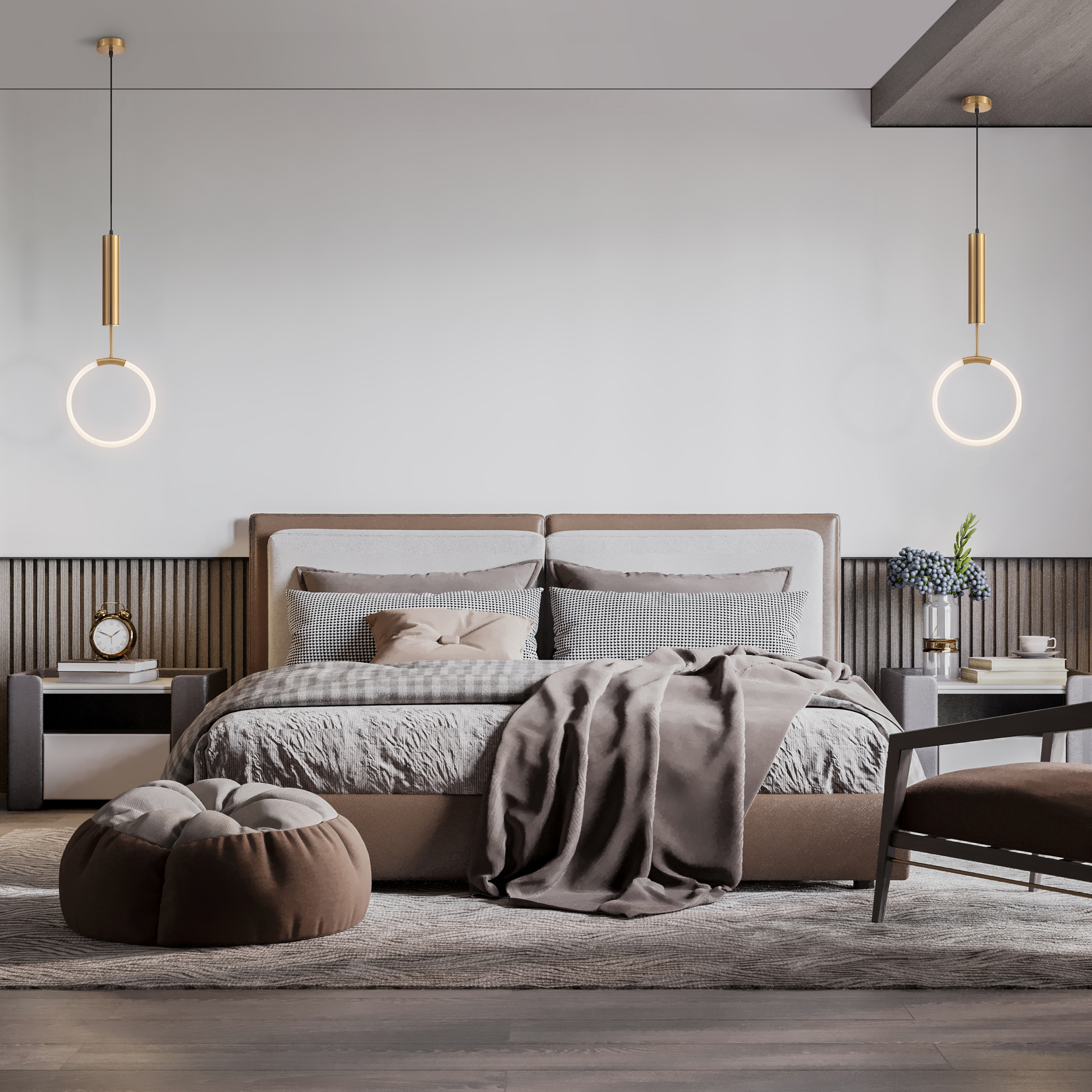 Арматура — тонкая металлическая, цвет — чёрный + латунь. Оригинальная конструкция. Три плафона-цилиндра с затемнённым стеклом закреплены на металлической оси cо встроенным LEDисточником света. Тренд «invisible light». Цветовая температура — 3000 К. Регулируемая высота.