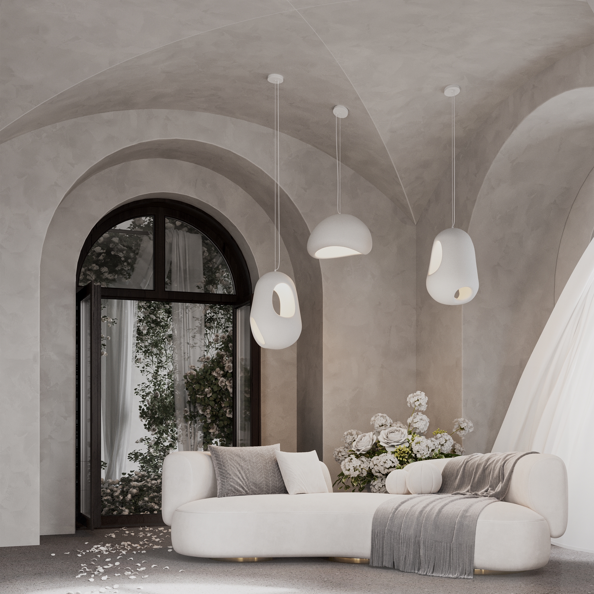 Арматура - металл. Цвет - белый. Материал плафонов поликарбонат. Белые, воздушные формы. Источник света -цоколь E27.