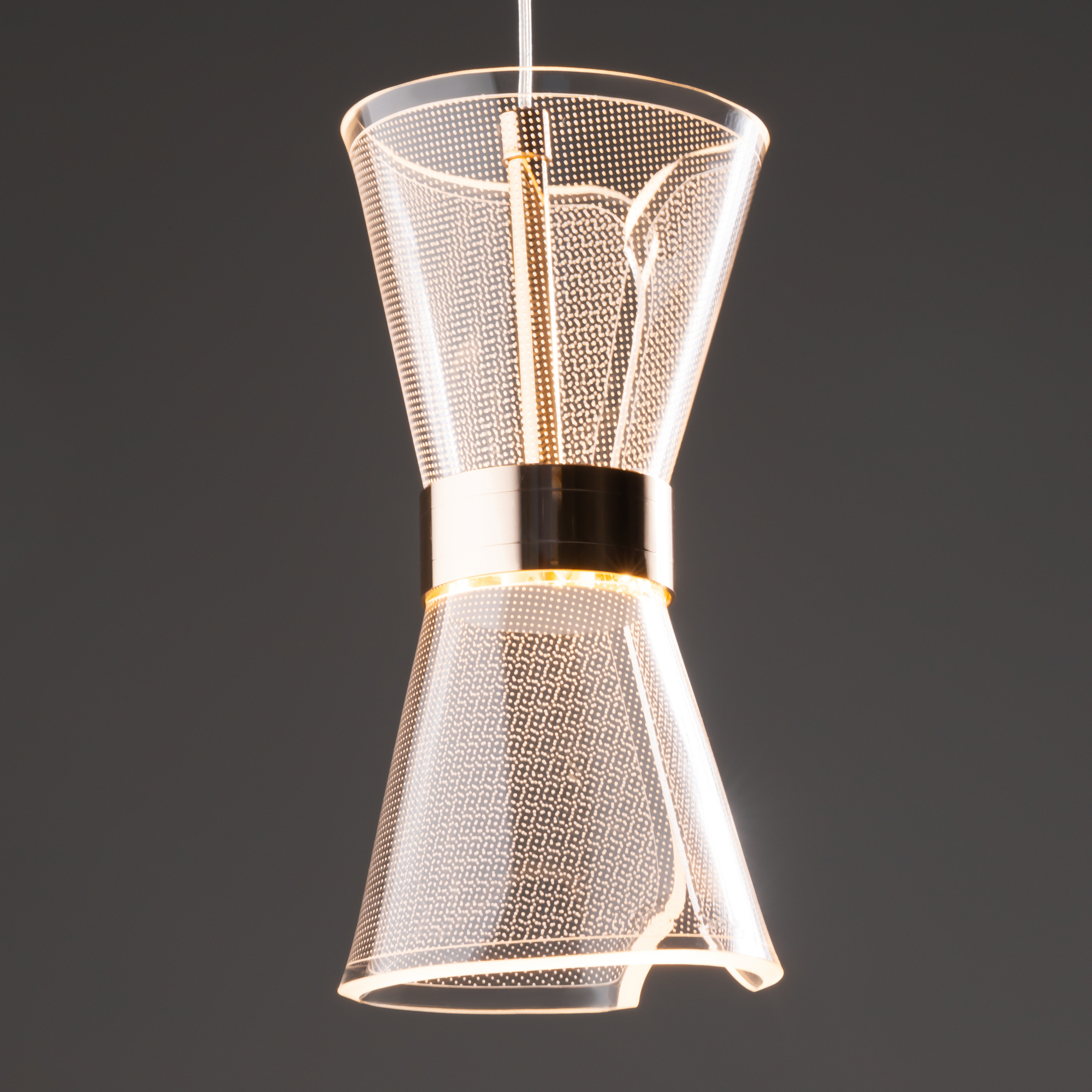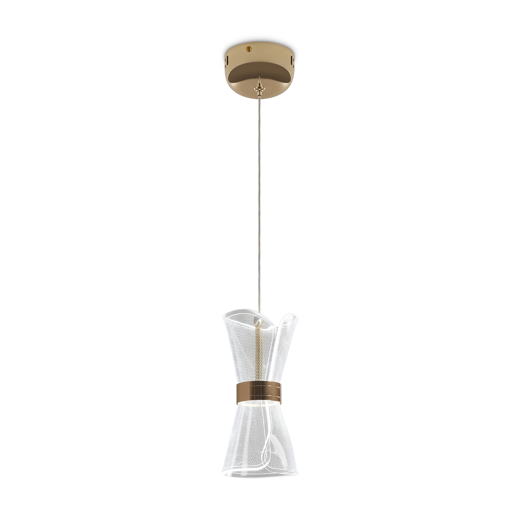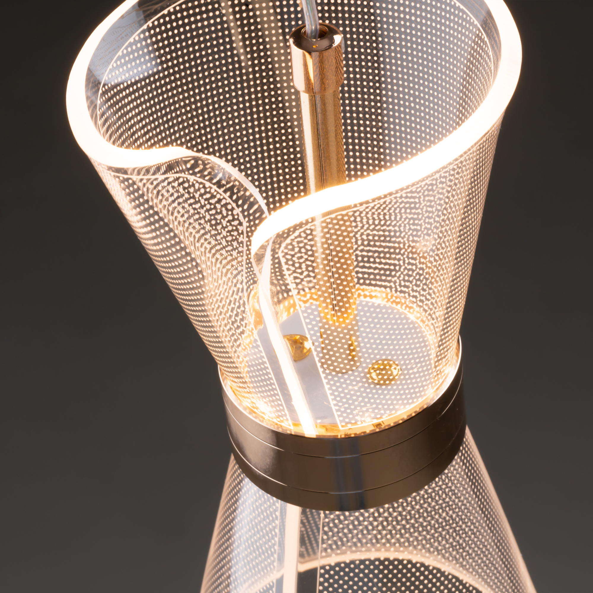 Арматура металл. Цвет золото. Плафоны из акрила. Форма песочные часы. Золотая окантовка как декоративный элемент. К светильникам прилагается пульт управления. LED источник света. Цветовая температура 2600-6000К.