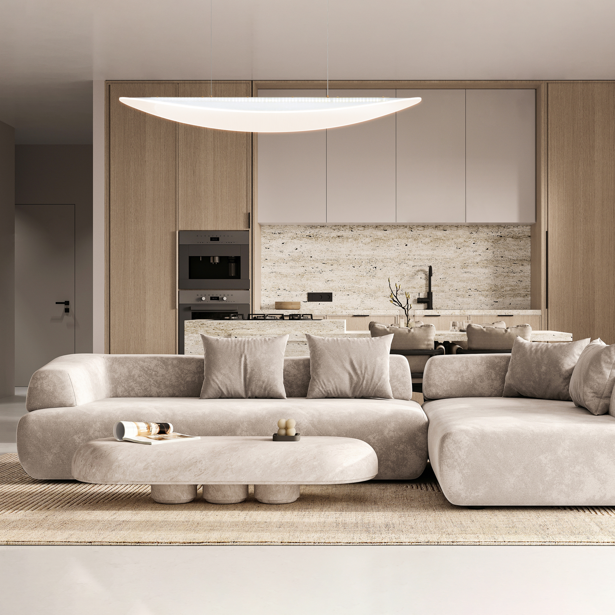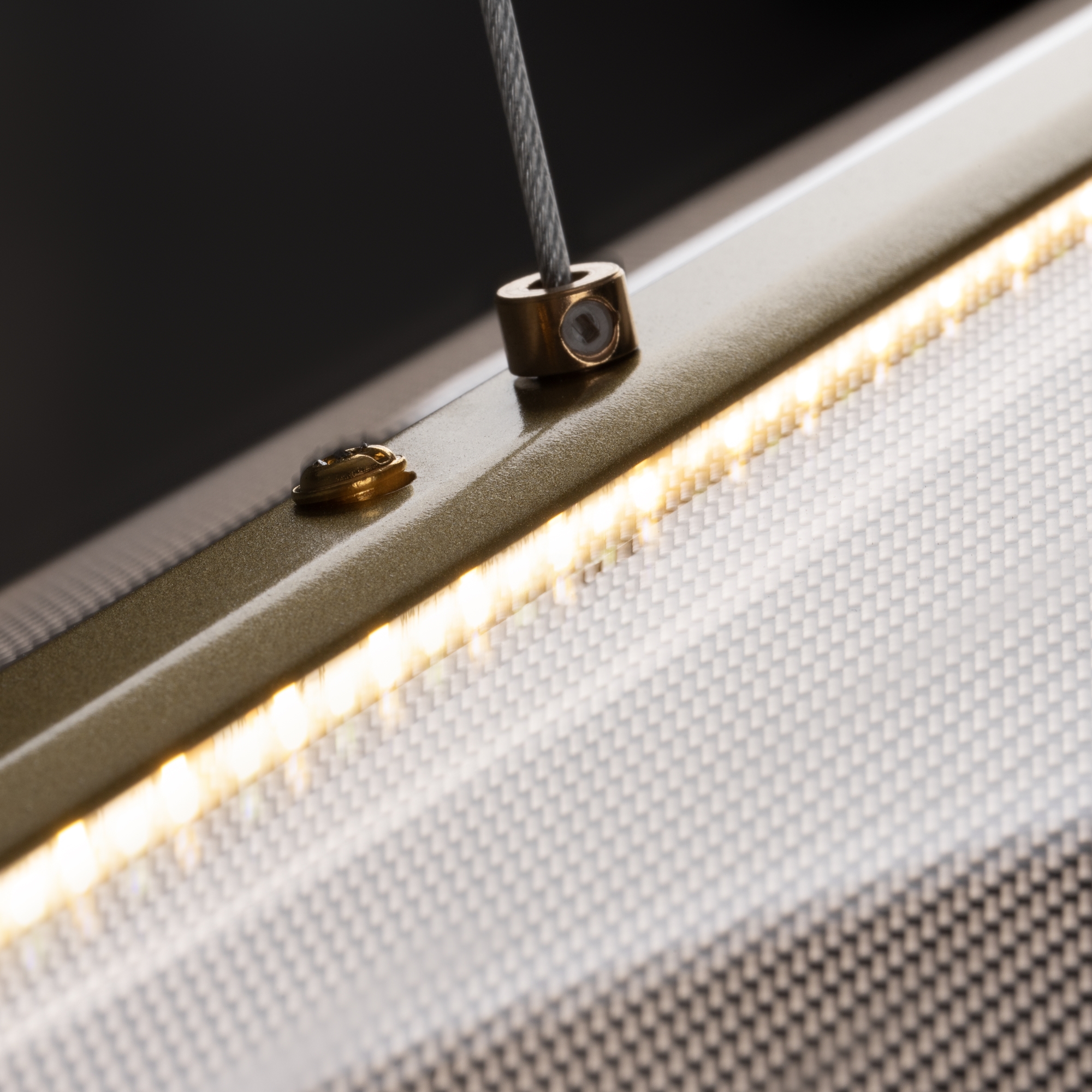 Арматура металл. Цвет арматуры золото. Акриловый плафон с золотой окантовкой в форме подвешенного облака. LED источник света. Цветовая температура 3000К.