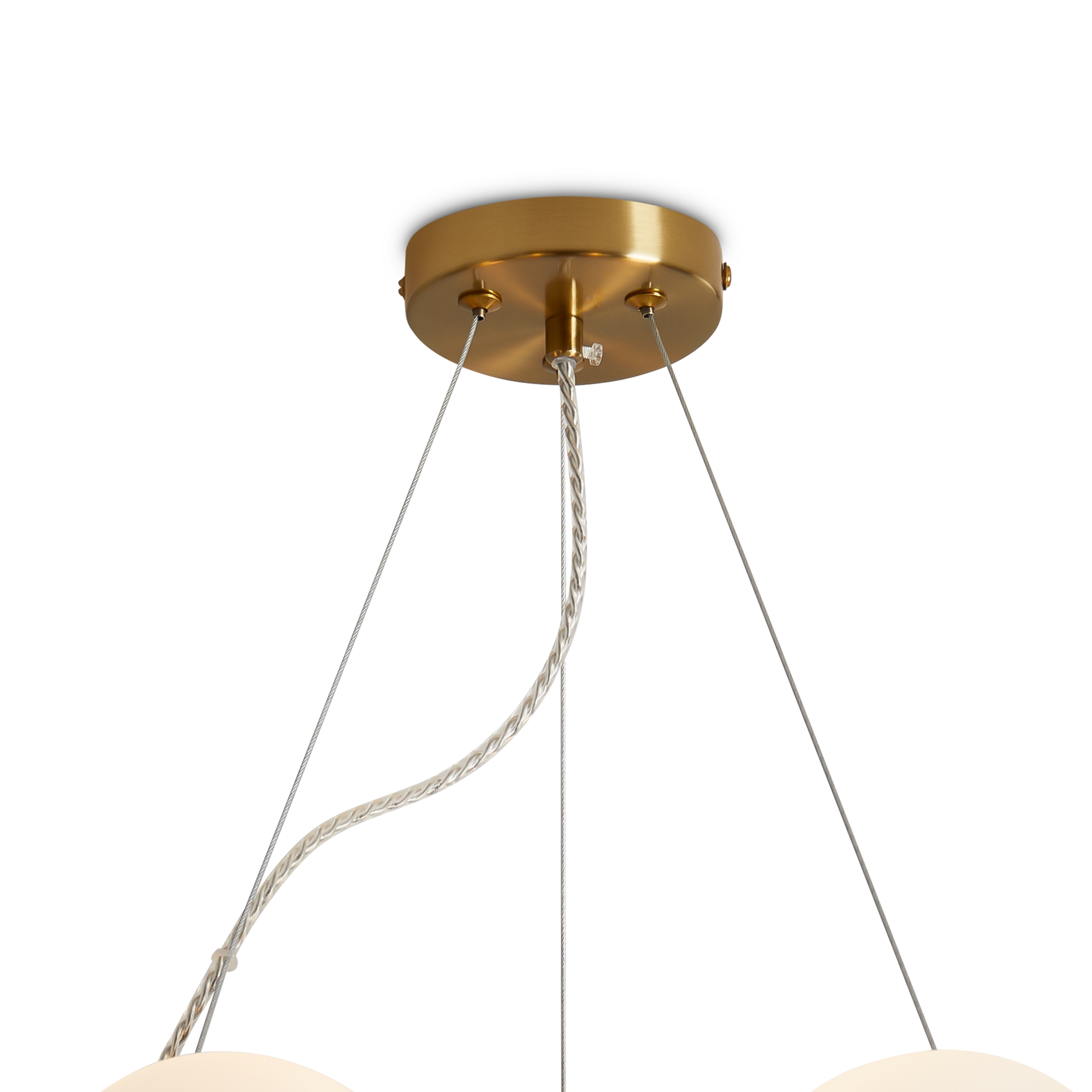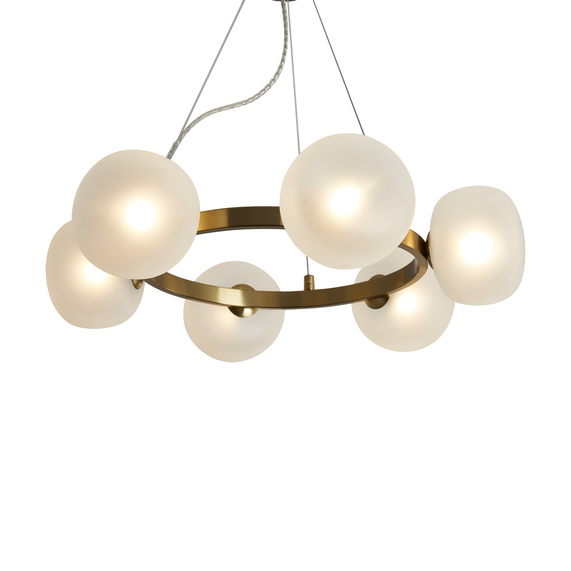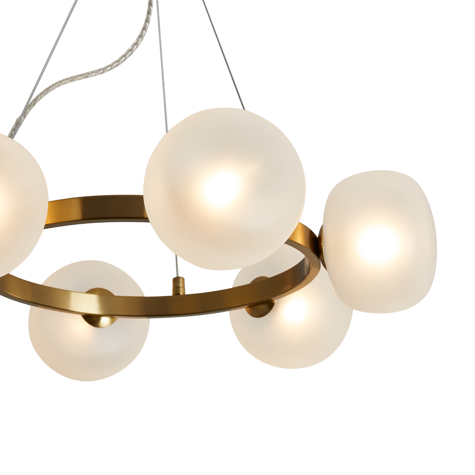 Арматура - металл. Цвет арматуры - латунь. Серия с необычной формой плафонов — немного приплюснутые, матовые белые. Настольные лампы и настенные бра выгнутой формы. Источник света лампа. Цоколь G9.