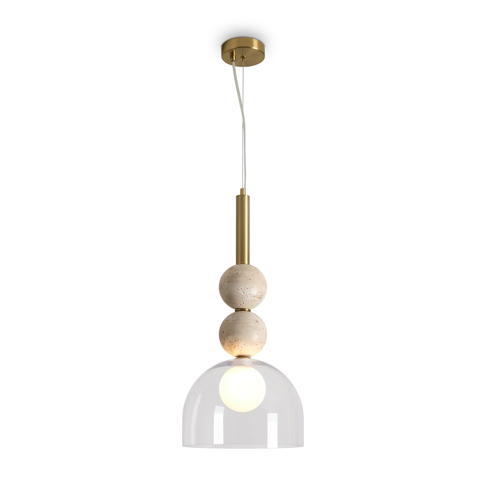 Серия Sunspot использует камень травертин как основной декоративный элемент. Настенные бра в двух вариантах: с матовым белым стеклянным плафоном и со «скользящим» теплым светом. Отличительная черта бра: увеличенный размер плафона и сенсорное включение/выключение без диммирования. Подвесные светильники имеют прозрачные стеклянные плафоны с декоративными шариками из камня травертин. Sunspot включают три модели подвесов разных размеров и форм стеклянной окантовки на плафон. Арматура — металл латунного и черного цвета Источники света LED 3000K и цоколь G9. Настольная лампа с touch переключателем . Серия создает комплексное зональное и акцентное освещение, подходящее для создания уютной атмосферы.