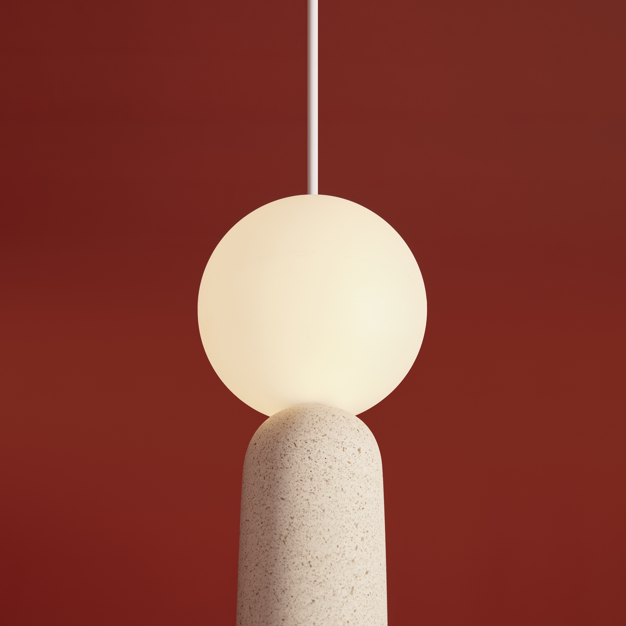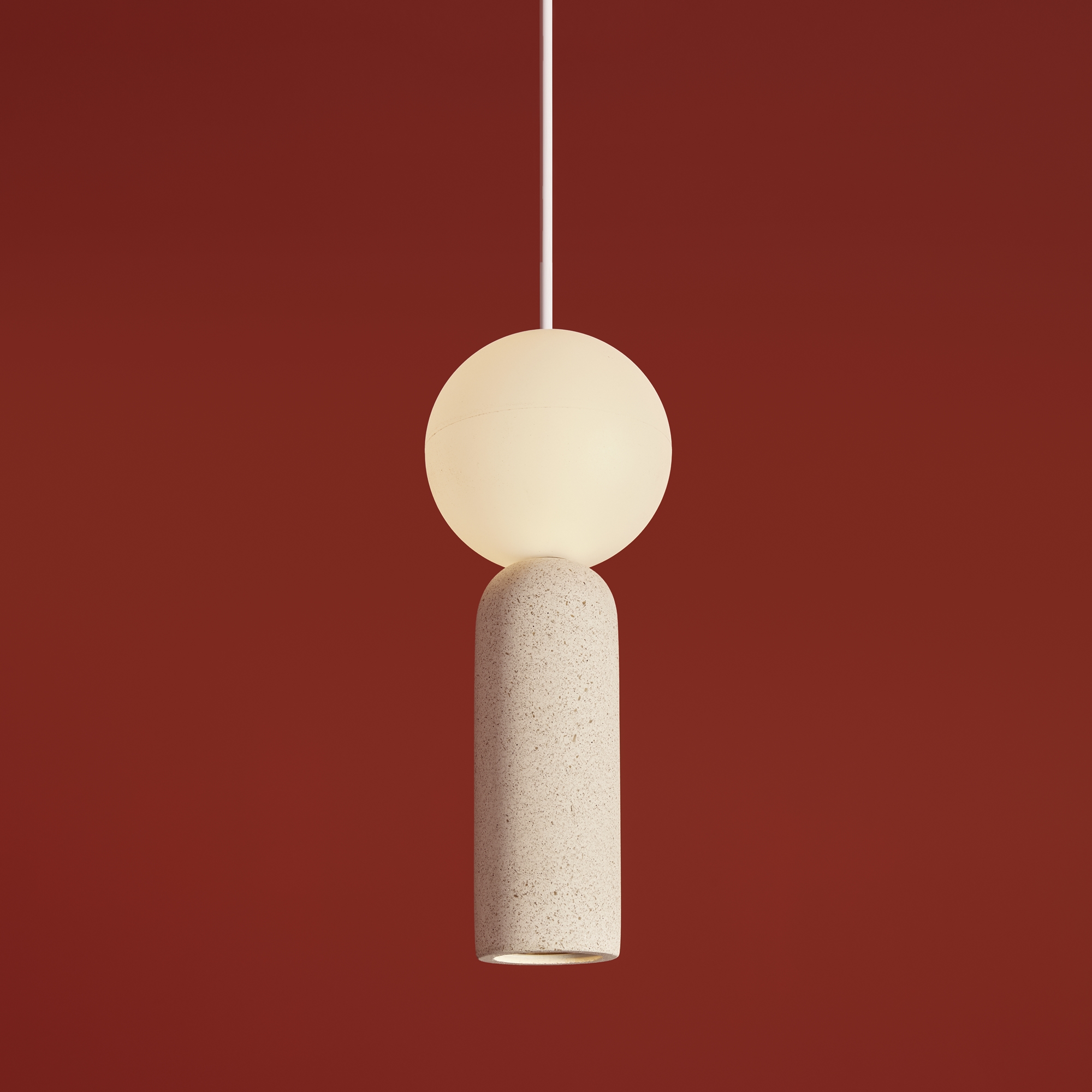 Материал арматуры — металл белого цвета, плафоны выполнены из светлого микроцемента. Светильники представлены в двух версиях: со встроенным LED-источником освещения с цветовой температурой 2700К, а также с цоколем E27. Минималистичный дизайн в белом цвете идеально подходит для современных интерьеров в стиле лофт или скандинавском стиле.