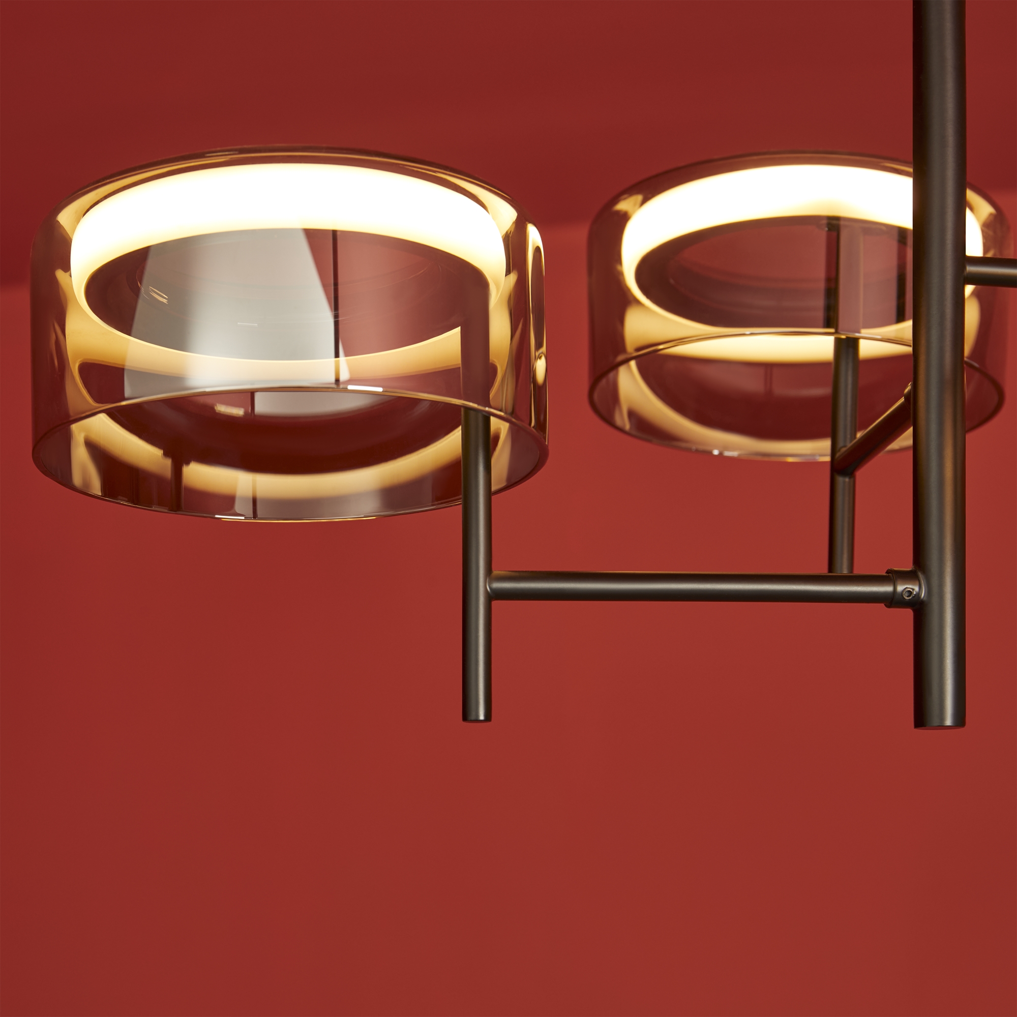 Материал арматуры — металл, цвет — черный. Плафоны выполнены из стекла дымчатого цвета. Светильники представлены в подвесном и напольном исполнении и оснащены LED-источником света с цветовой температурой 3000К. Сочетание металла и затемненного стекла создает выразительную атмосферу в современных интерьерах таких как минимализм и лофт.
