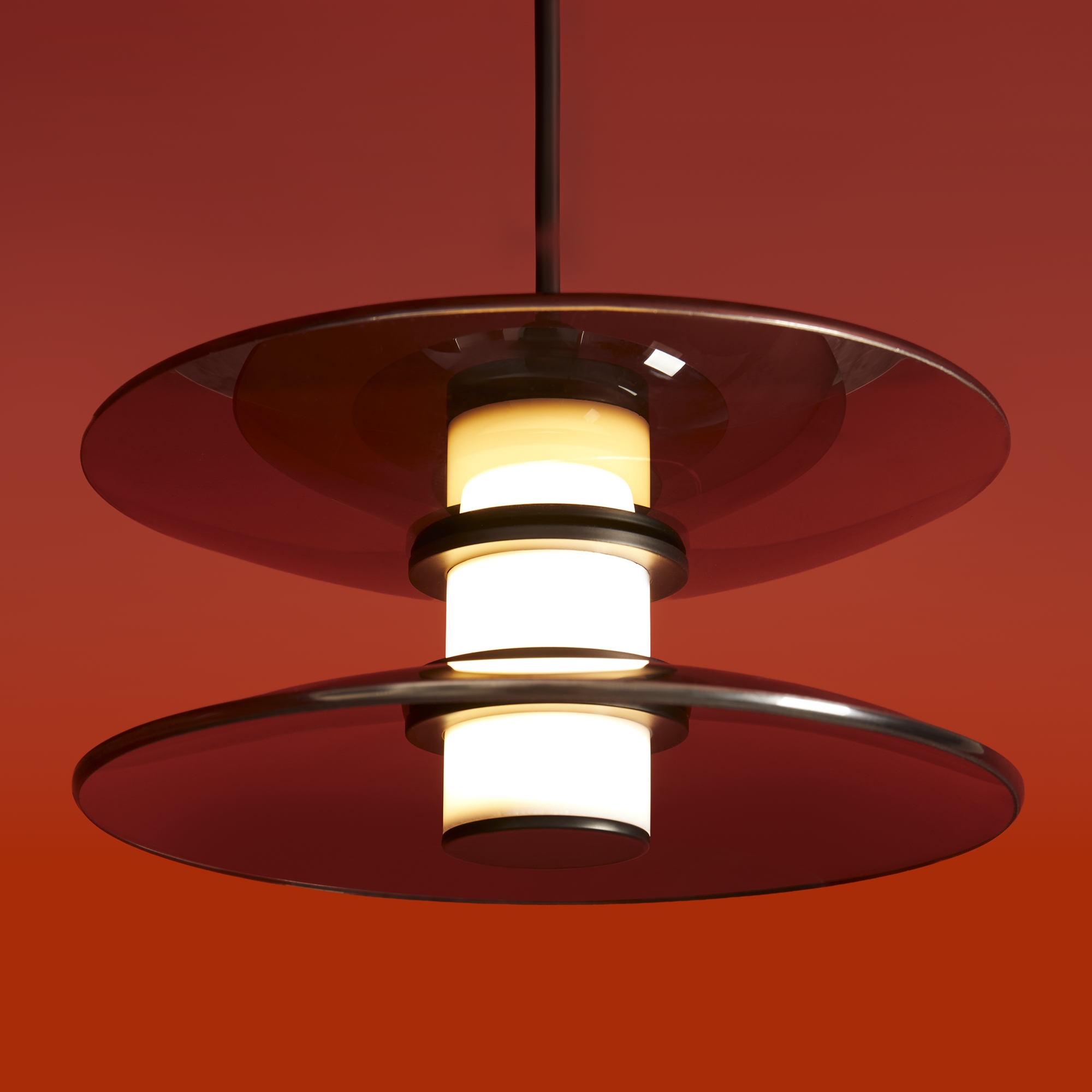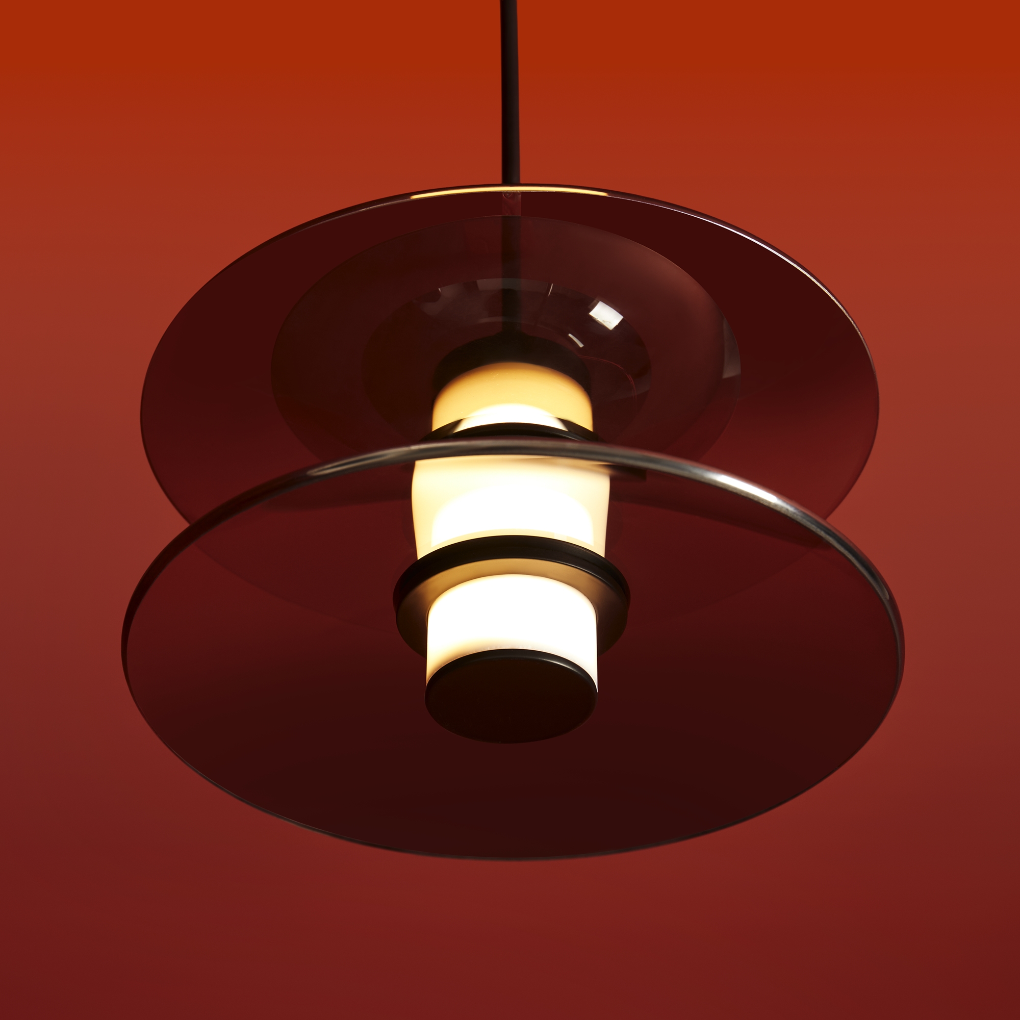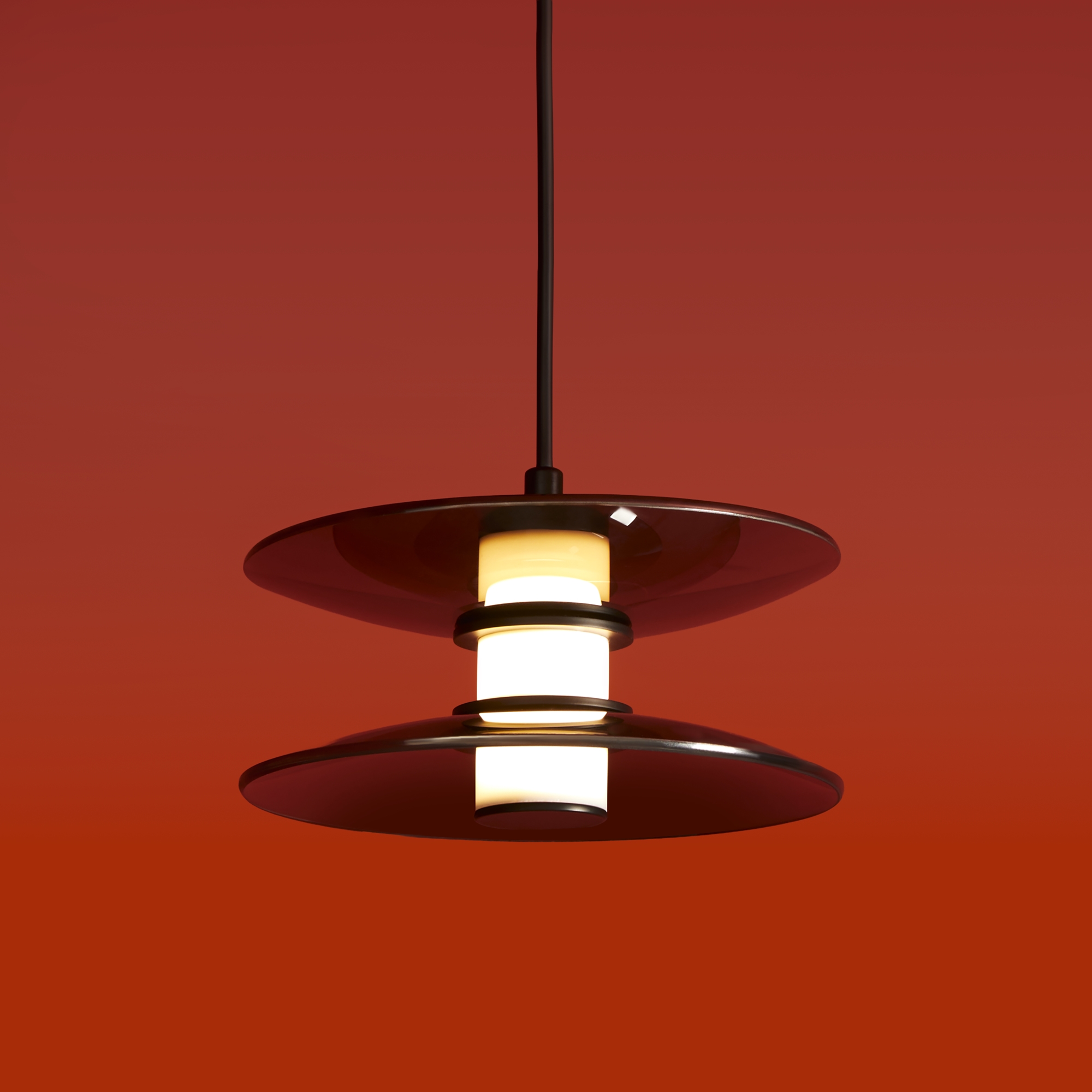 Материал арматуры — металл, цвет — черный. Плафоны выполнены из стекла дымчатого цвета. Светильники представлены в подвесном и напольном исполнении и оснащены LED-источником света с цветовой температурой 3000К. Сочетание металла и затемненного стекла создает выразительную атмосферу в современных интерьерах таких как минимализм и лофт.