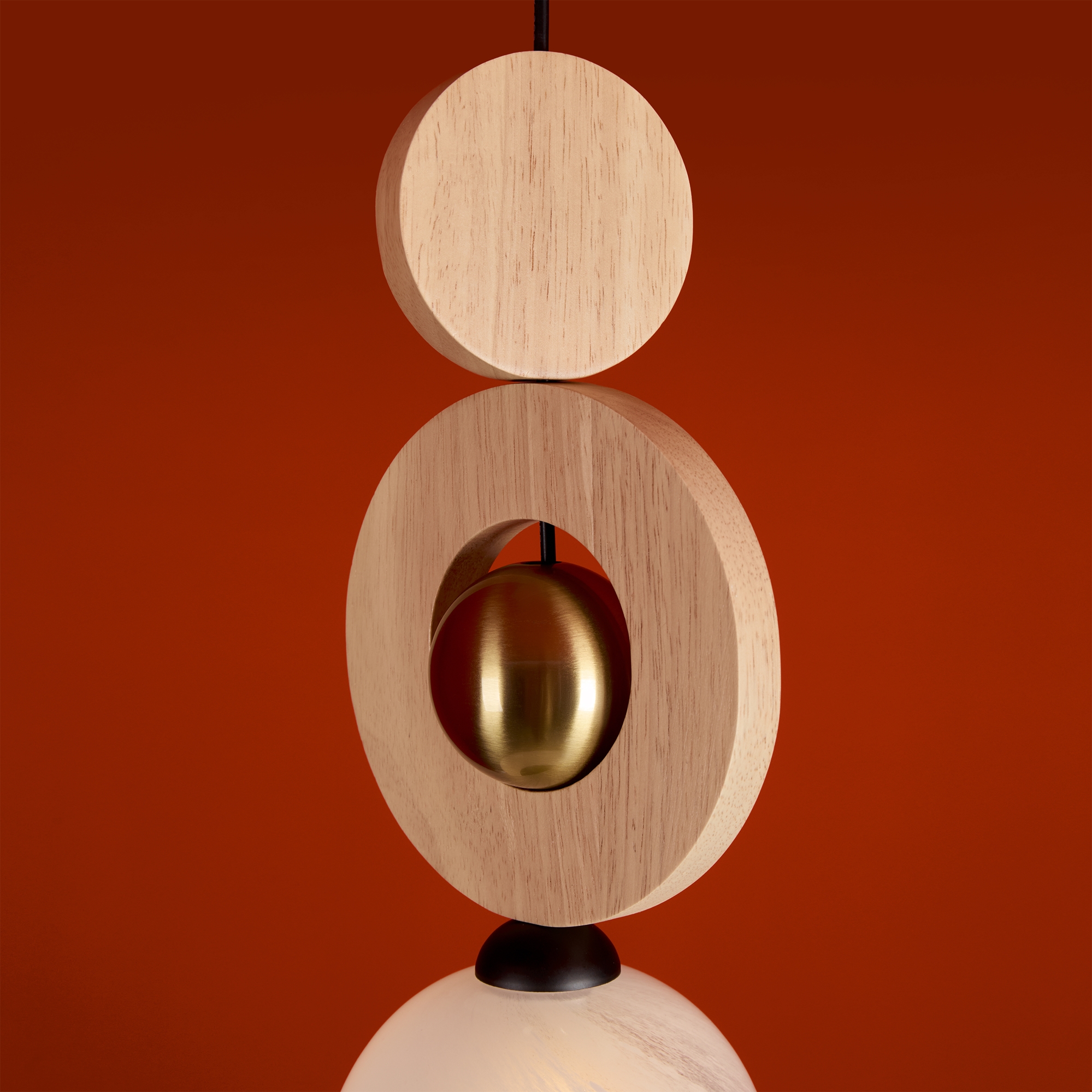 Металлическая арматура в цвете латунь. Деревянные и стеклянные сферические плафоны с мягким рассеянным светом. Лампа G9 (в комплект не входит.). Элегантный дизайн для уютных интерьеров.