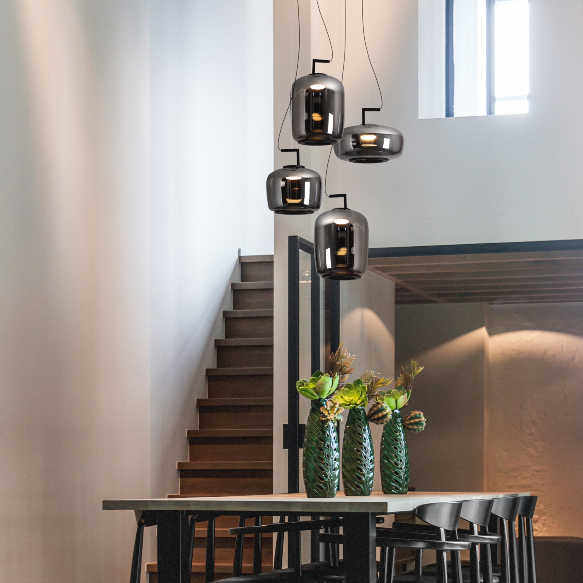 Серия Clod представлена тремя подвесными светильниками разных размеров и форм. Плафоны из стекла дымчато-серого цвета с гальваническим покрытием. Арматура — металл черного цвета. LED источник света 3000K. Светильники Clod раскрывает свой потенциал при комплексной развеске, следуя трендовому направлению в дизайне использовать разные формы. Создает мягкое, атмосферное освещение, подходящее для современных интерьеров.
