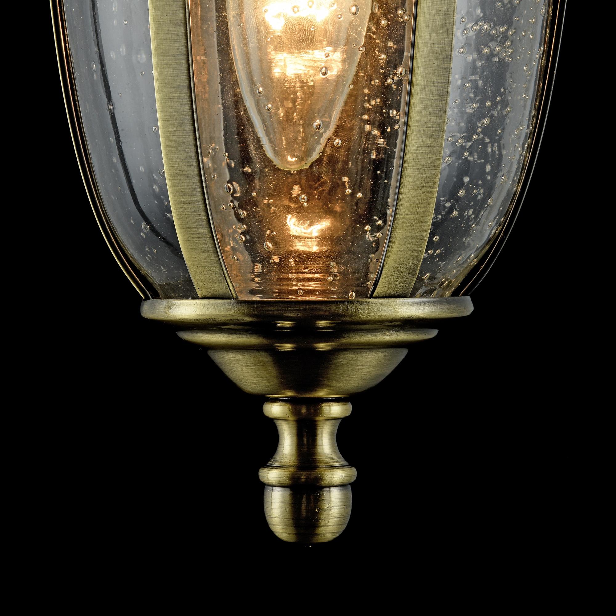 Металлическая арматура в двух оттенках: хром и бронза. Плафон – прозрачное выдувное стекло с металлическим каркасом.