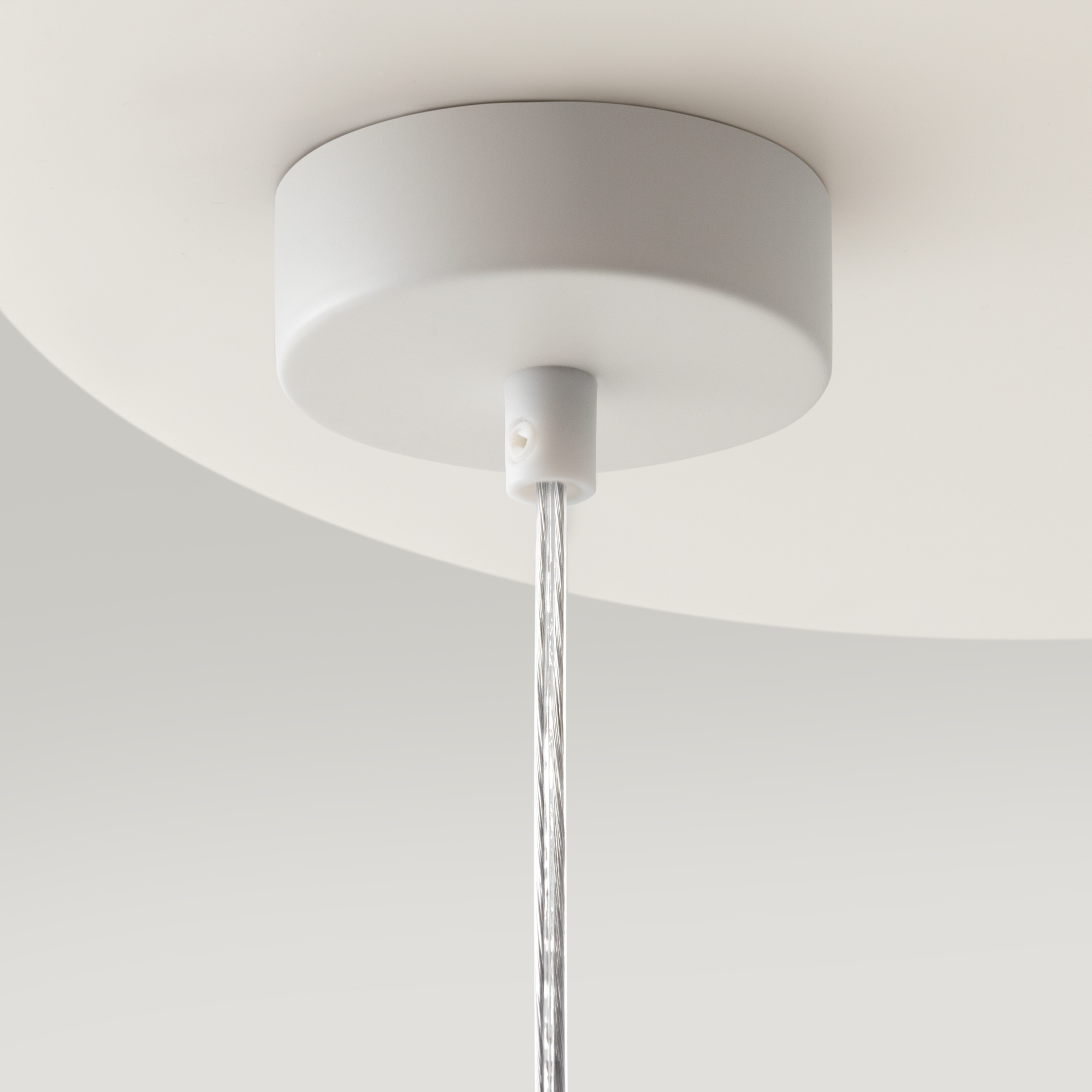 Арматура из металла в трех оттенках: белый, черный, латунь. Плафоны-сферы закреплены на округлом металлическом каркасе. Материал плафонов — выдувное стекло, цвет — белый. Высота подвесных моделей регулируется.