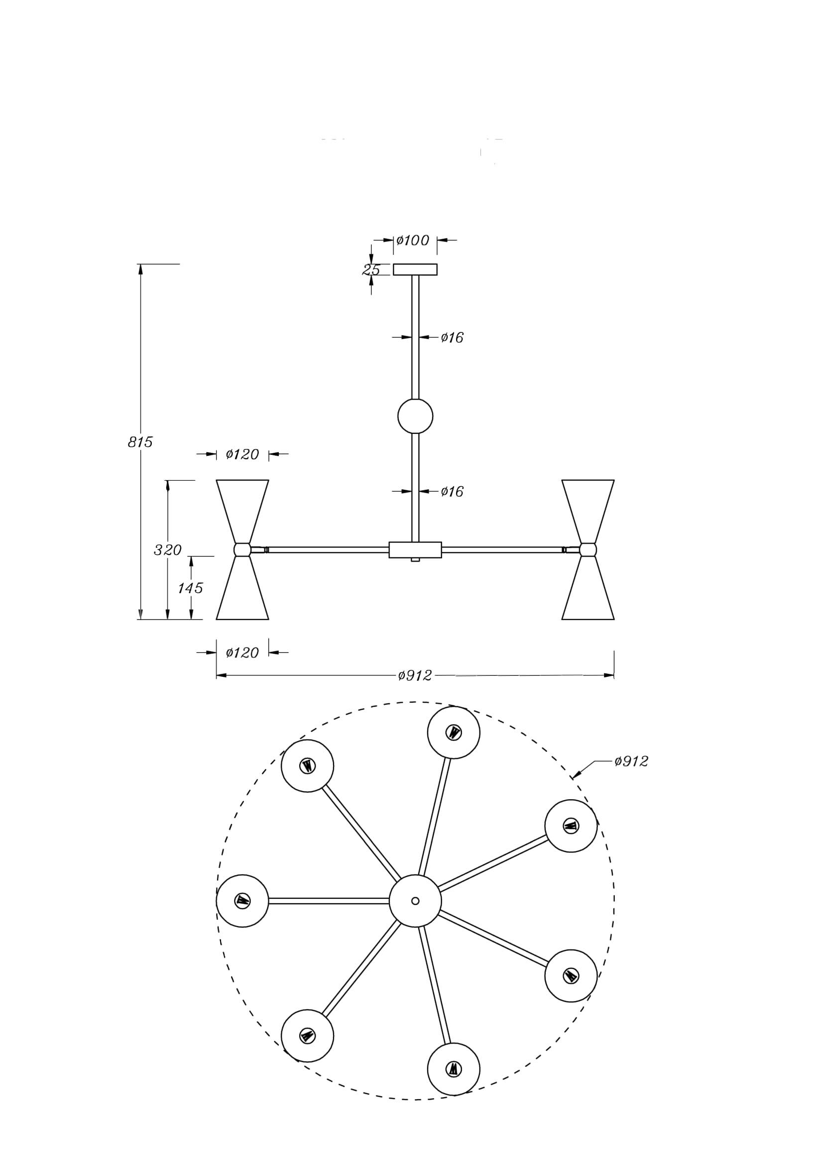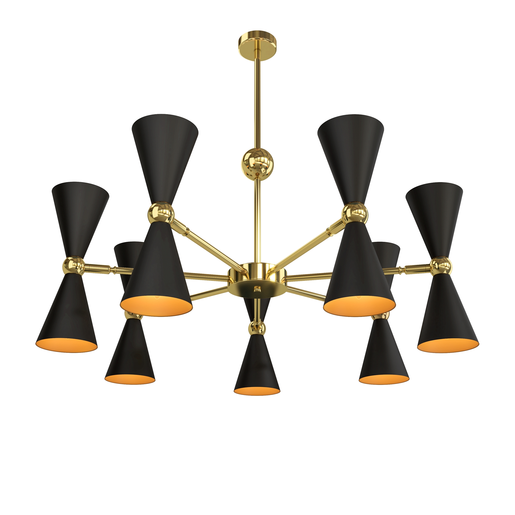 Материал арматуры - металл, оттенок – золото. Металлические плафоны изнутри окрашены в золотой цвет. Внешняя сторона в двух вариантах оттенков: черный и белый. Поворотный механизм, рожки вращаются.