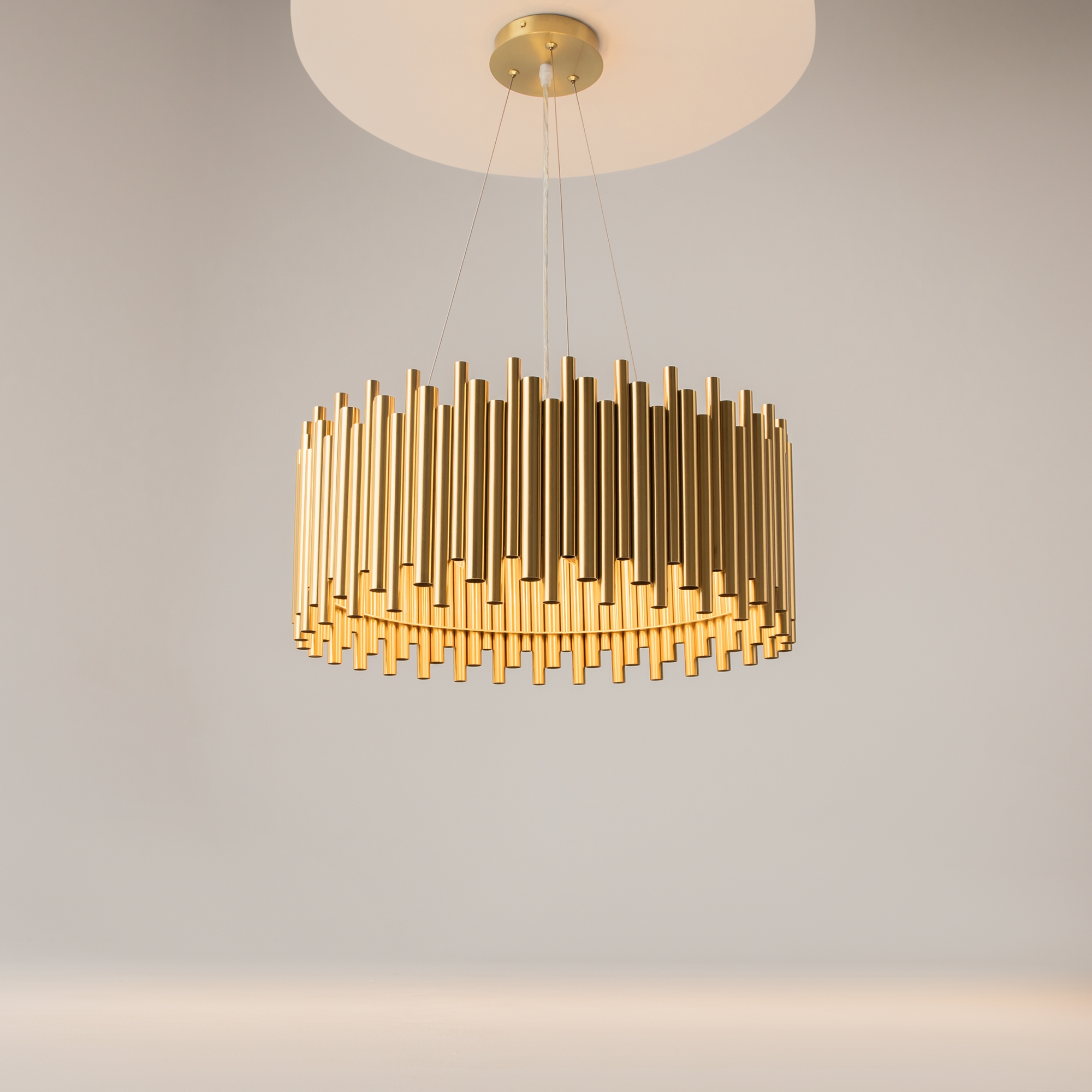 Материал арматуры – металл, цвет – латунь. Декор в виде трубок из нержавеющей стали в бронзовом цвете. Последний ряд декора – стеклянные трубки – обеспечивает невесомый силуэт.