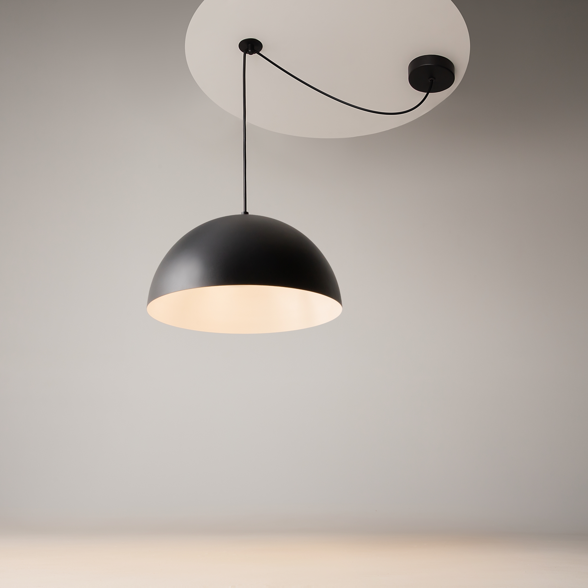 Материал арматуры - металл. Цвета - черный, белый, а также два актуальных оттенка серого. Универсальные и базовые формы плафонов. В комплекте: крюк, дополнительное основание и металлический элемент, которые позволяют закрепить подвес в нужной зоне или использовать его в качестве бра. Цоколь Е27. Лампы не входят в комлпект.