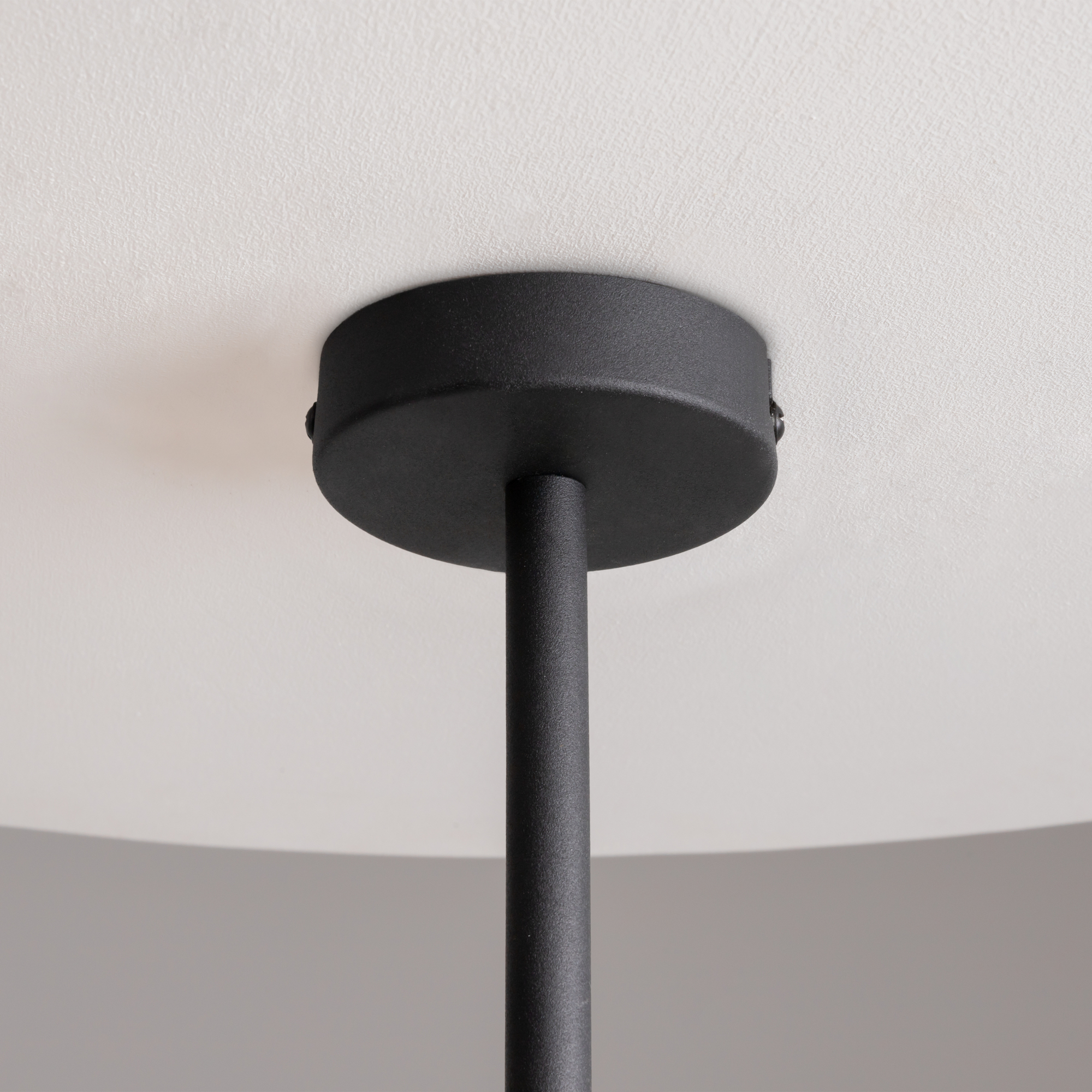 Металлическая арматура, цвет - черный. Светильники стилизованы под форму песочных часов с обтекаемой формой. Керамические элементы с глянцеовй глазурью. Подвесные светильники с плафонами из белой керамики с прозрачным, черно-белым, золото-белым и белым стеклом. Регулируемая высота подвесных светильников.