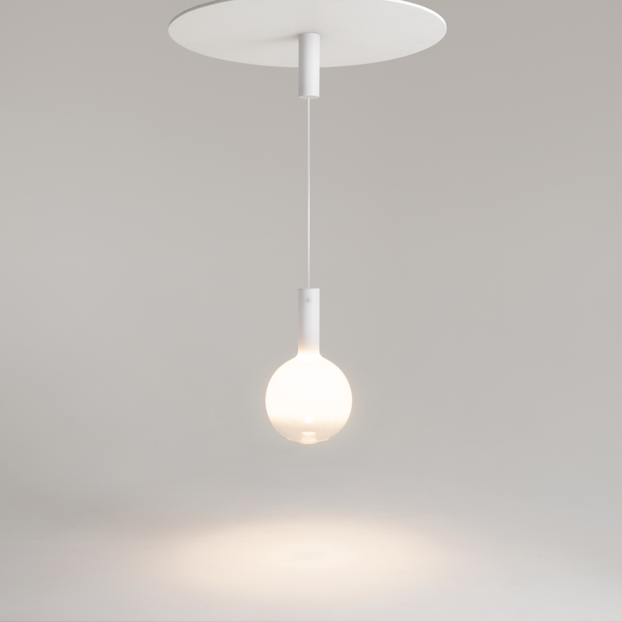 Металлическая арматура, цвет - черный, белый. Выдувной плафон-шар из стекла с вытянутым цилиндрическим основанием в трех цветах: дымчато-черный, туманно-белый, бежево-коньячный. LED-источник света в основании плафона. Цветовая температура 3000К. Два диаметра плафонов и регулируемая длина проводов для создания разнообразных композиций.