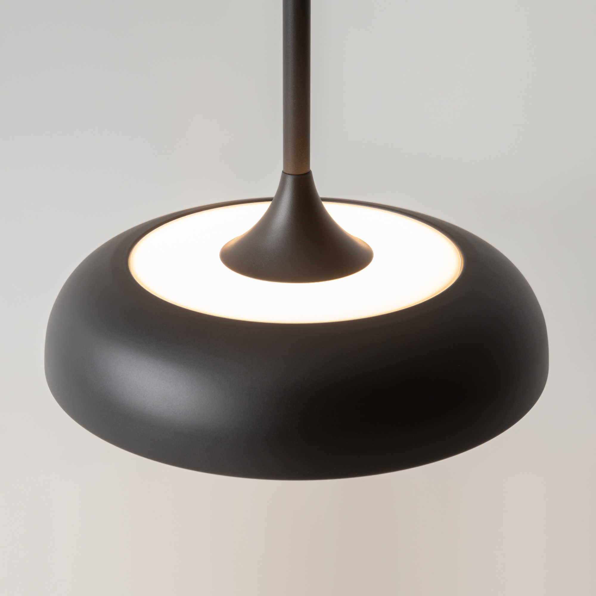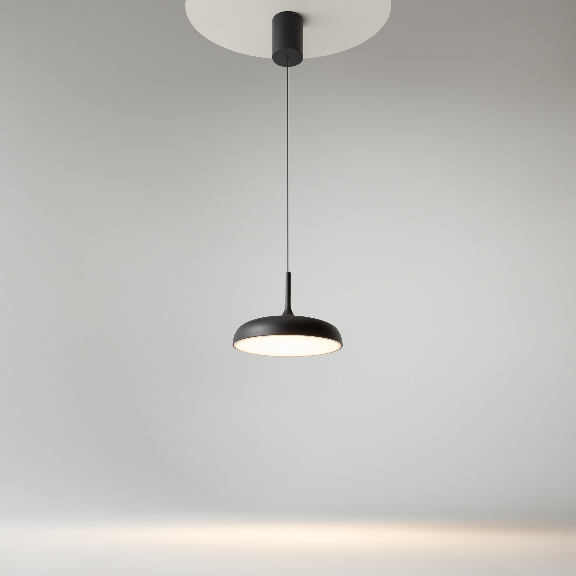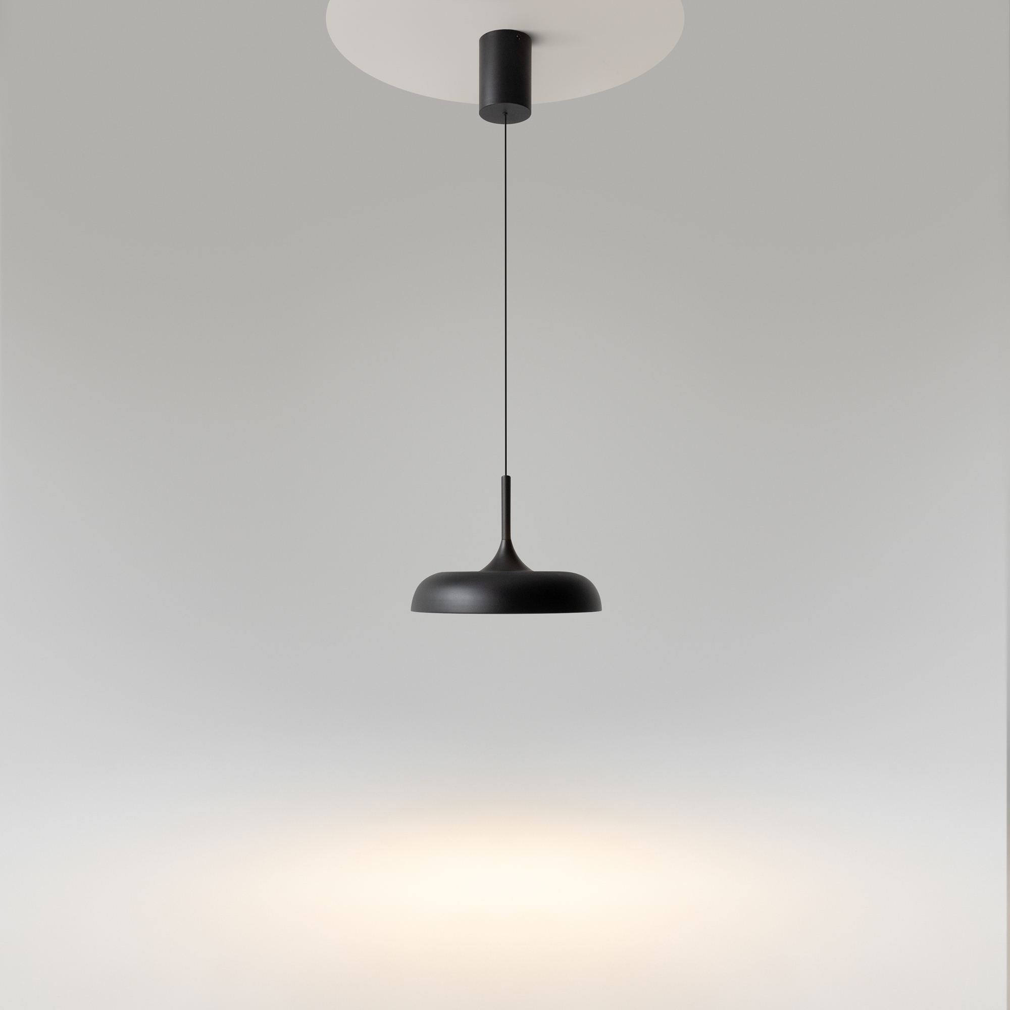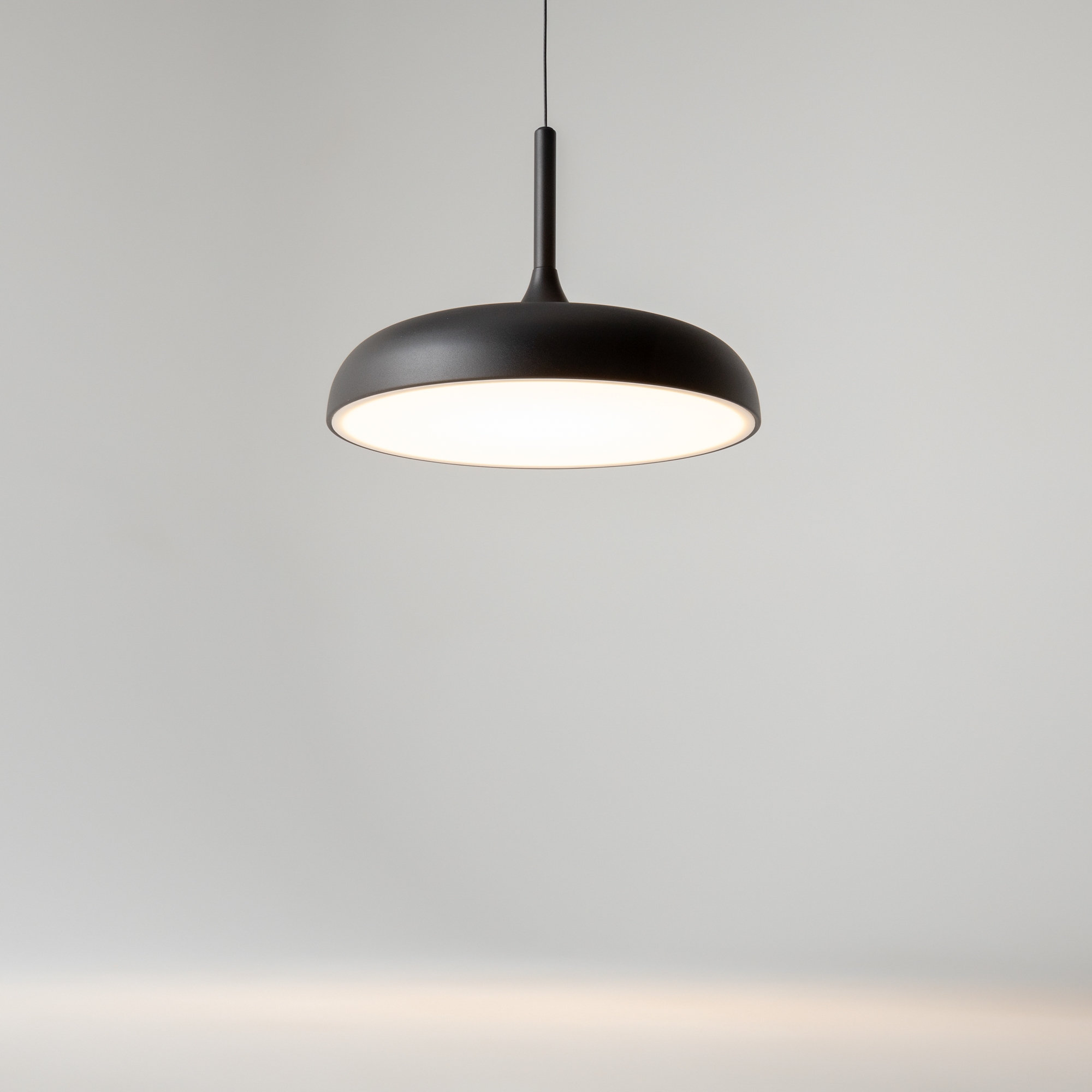 В минималистичной серии Gerhard представлены светильники в двух диаметрах (300 мм и 400 мм), двух цветах (черный и белый), а также в двух форматах. Первое поколение светильников – классические – направленный вниз свет, длина провода 3 метра. Второе поколение светильников – функциональные – двунаправленный источник света (вверх и вниз) и лифтовый механизм с проводом 2 метра, что позволяет менять высоту расположения светильника одним движением. LED-источник света с цветовой температурой 3000K.