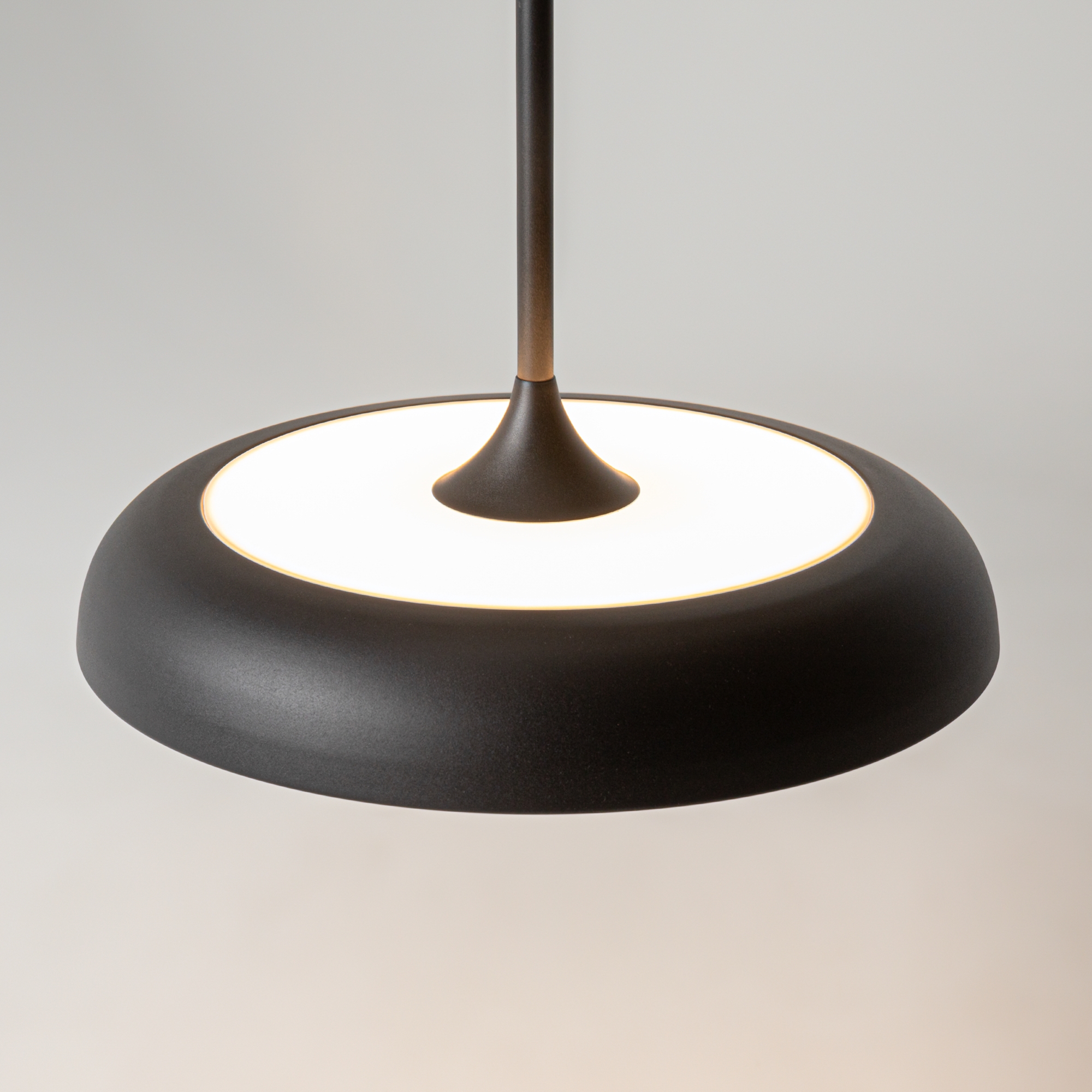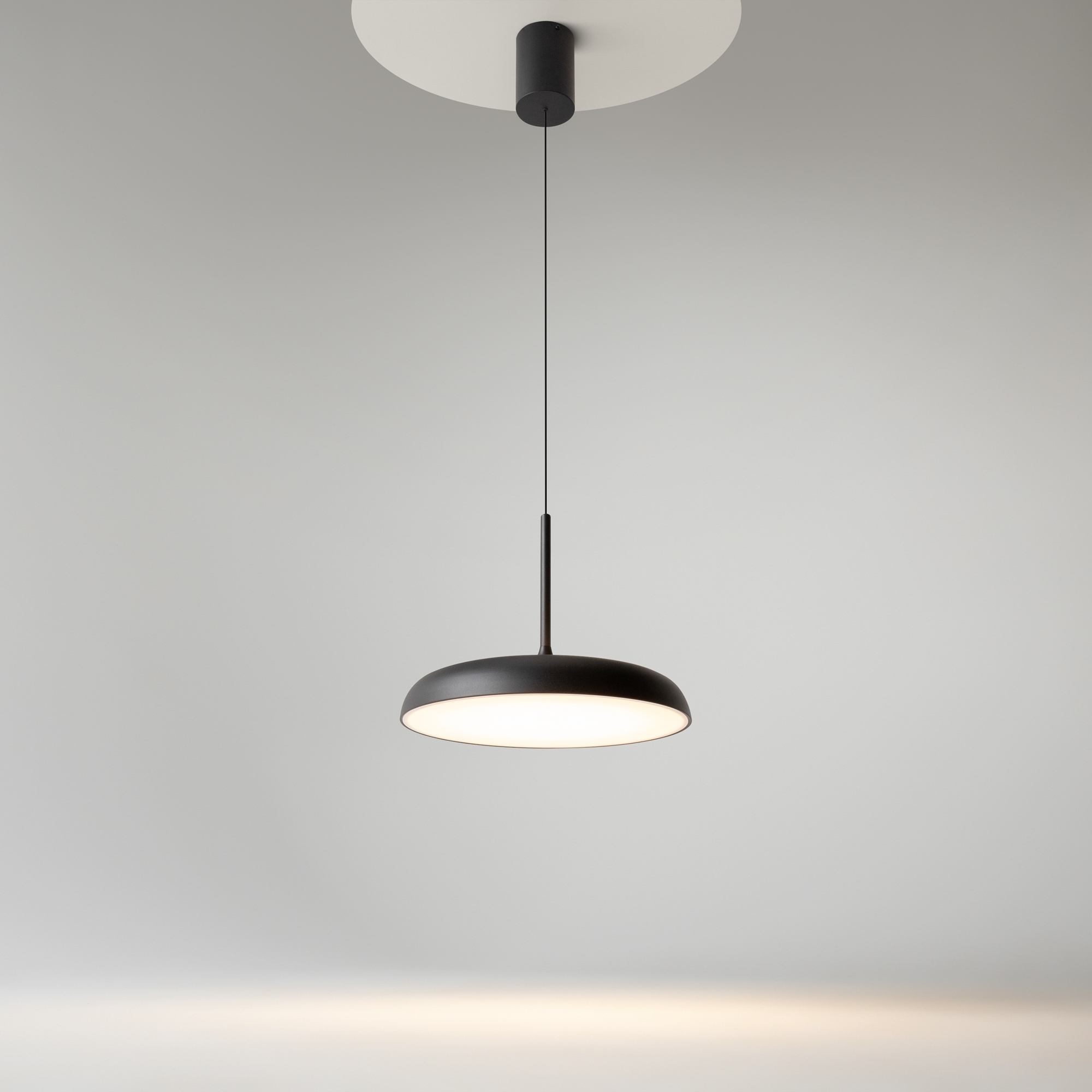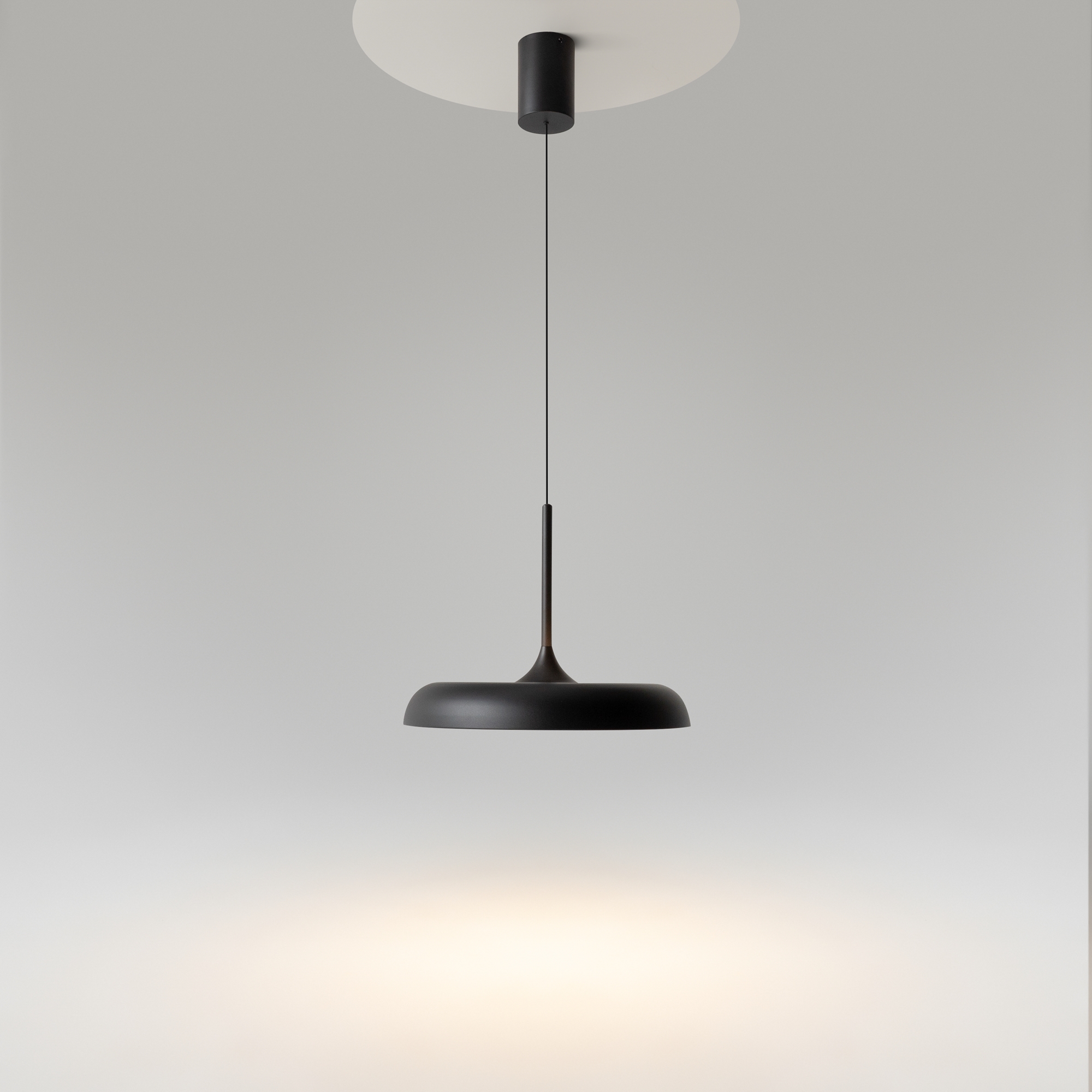 В минималистичной серии Gerhard представлены светильники в двух диаметрах (300 мм и 400 мм), двух цветах (черный и белый), а также в двух форматах. Первое поколение светильников – классические – направленный вниз свет, длина провода 3 метра. Второе поколение светильников – функциональные – двунаправленный источник света (вверх и вниз) и лифтовый механизм с проводом 2 метра, что позволяет менять высоту расположения светильника одним движением. LED-источник света с цветовой температурой 3000K.