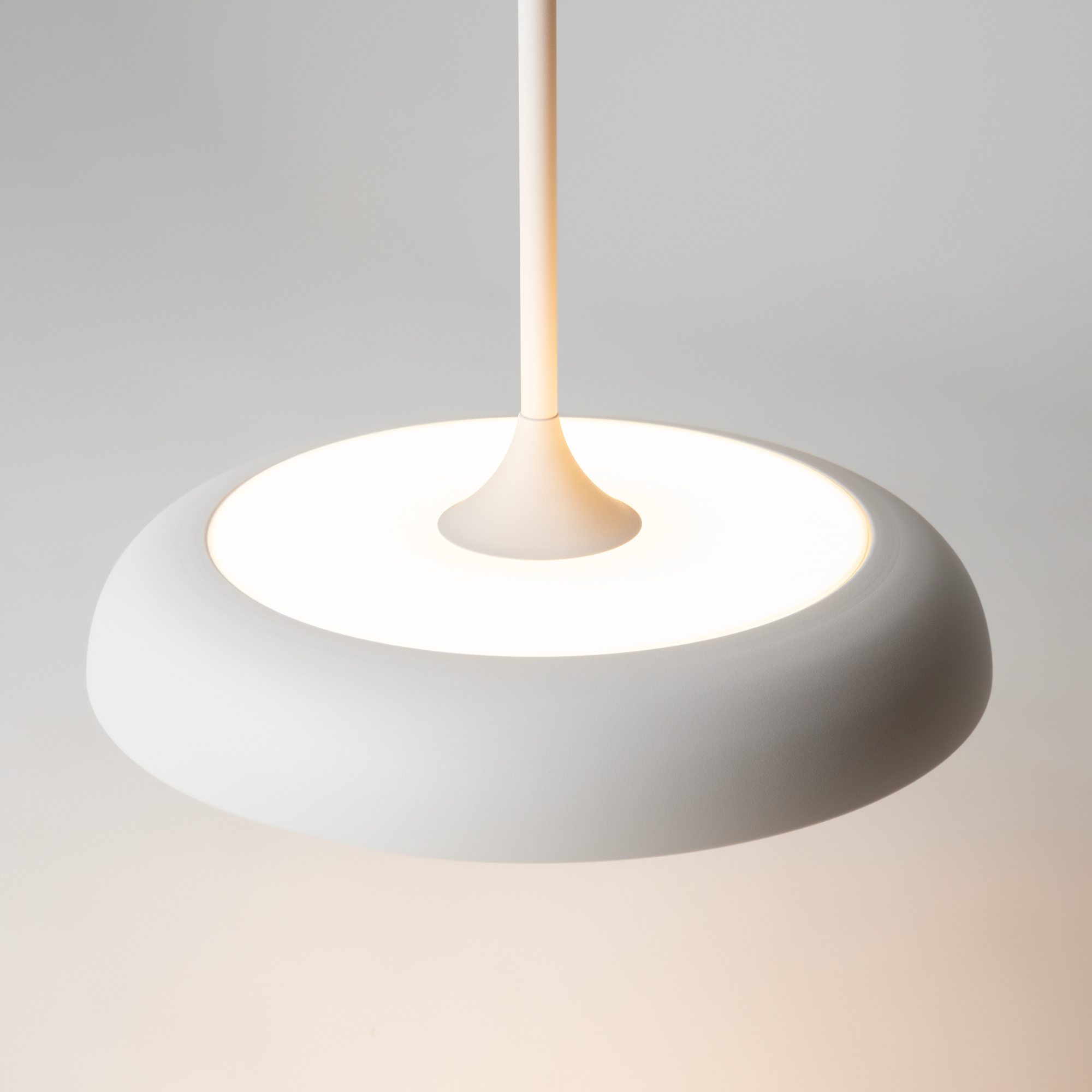 В минималистичной серии Gerhard представлены светильники в двух диаметрах (300 мм и 400 мм), двух цветах (черный и белый), а также в двух форматах. Первое поколение светильников – классические – направленный вниз свет, длина провода 3 метра. Второе поколение светильников – функциональные – двунаправленный источник света (вверх и вниз) и лифтовый механизм с проводом 2 метра, что позволяет менять высоту расположения светильника одним движением. LED-источник света с цветовой температурой 3000K.