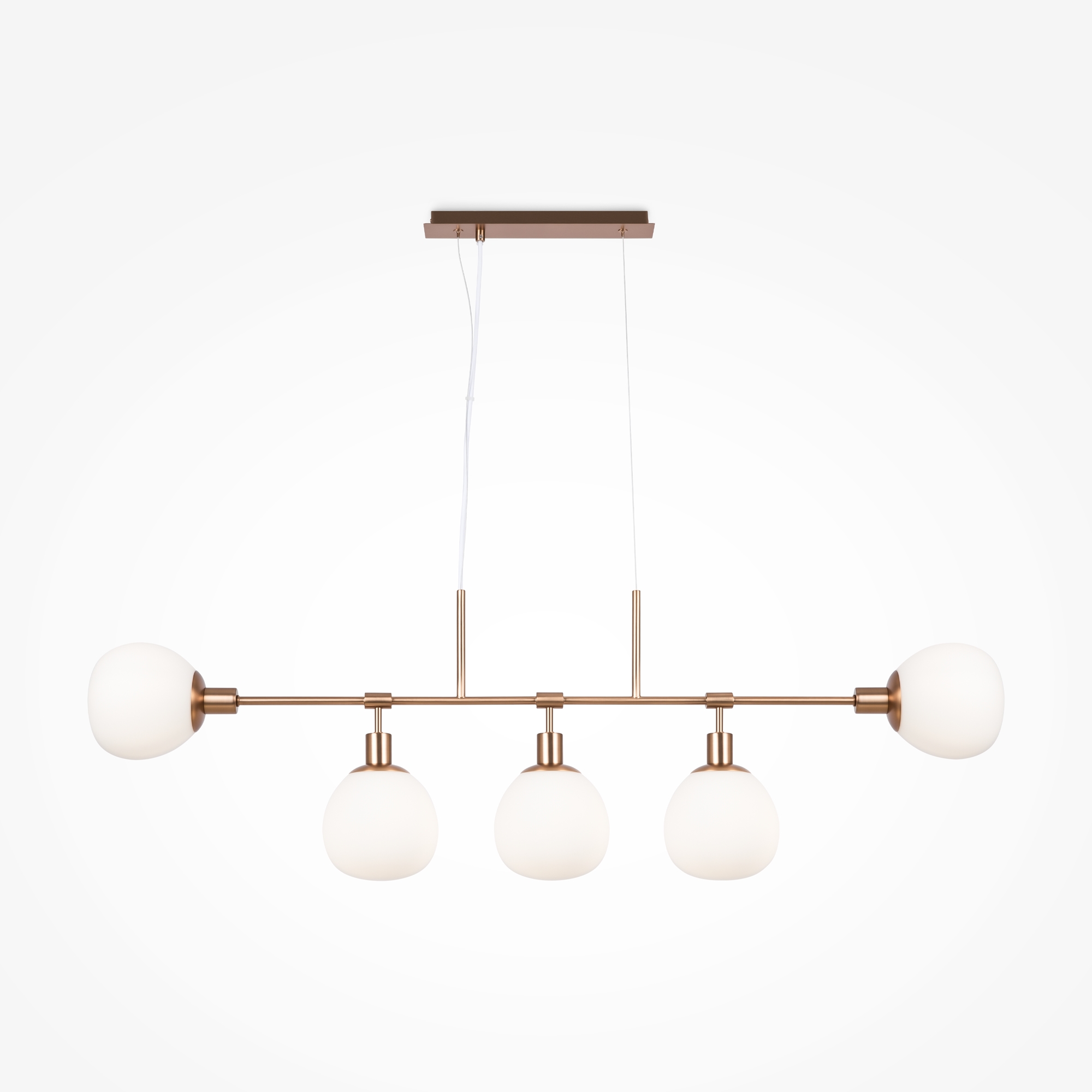 Металлическая арматура, цвет – никель, латунь. Плафоны – выдувное стекло белого цвета. Широкая семья. У торшера и настольной лампы можно изменять положение плафона. Регулируемая высота.