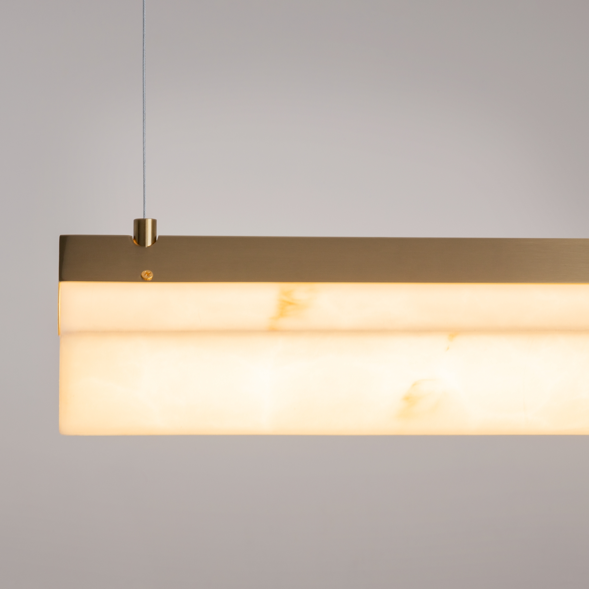 Арматура - металл, цвет латунь. Световой слот из пластика с мраморным рисунком эффектно обрамляет латунный остов образуя форму ромба. Регулируемая длина тросов - 3 метра. LED-источник света, цветовая температура 3000К. Завораживающее свечение каменного слота при включенном свете.