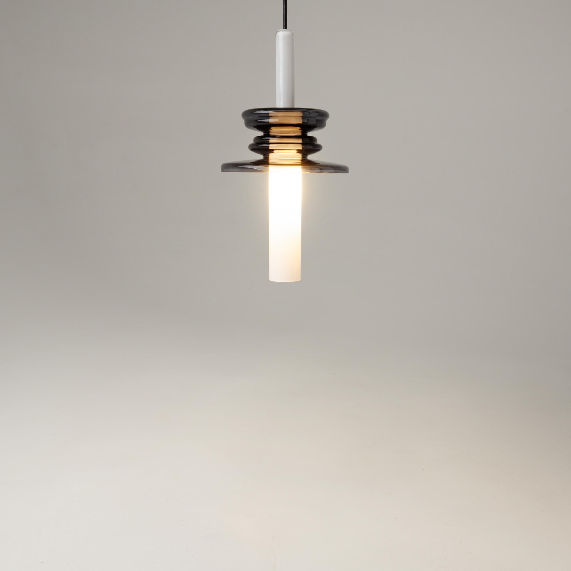 Уникальная многослойная конструкция в образе звуковой волны. Магнитная потололчная чаша из металла без видимых креплений. Плафон-трубка из белого полупрозрачного стекла. Декоративный волнообразный «звуковой» элемент из литого стекла в центре плафона. Цвета - синий, черный, золото, серый. Источник света - лампа с цоколем G9.