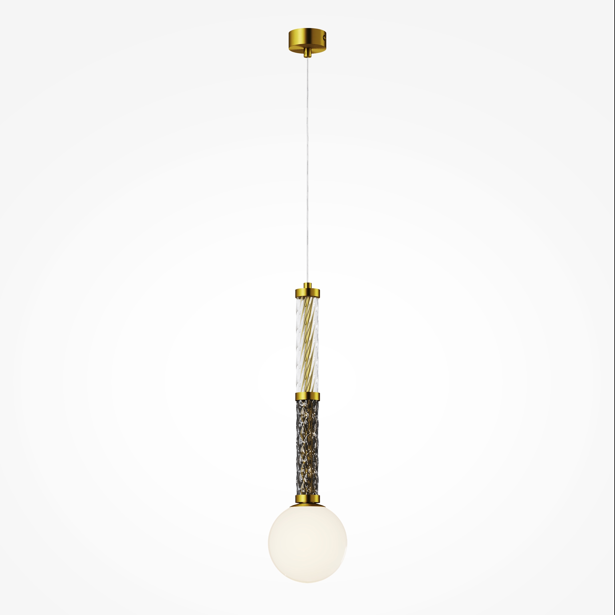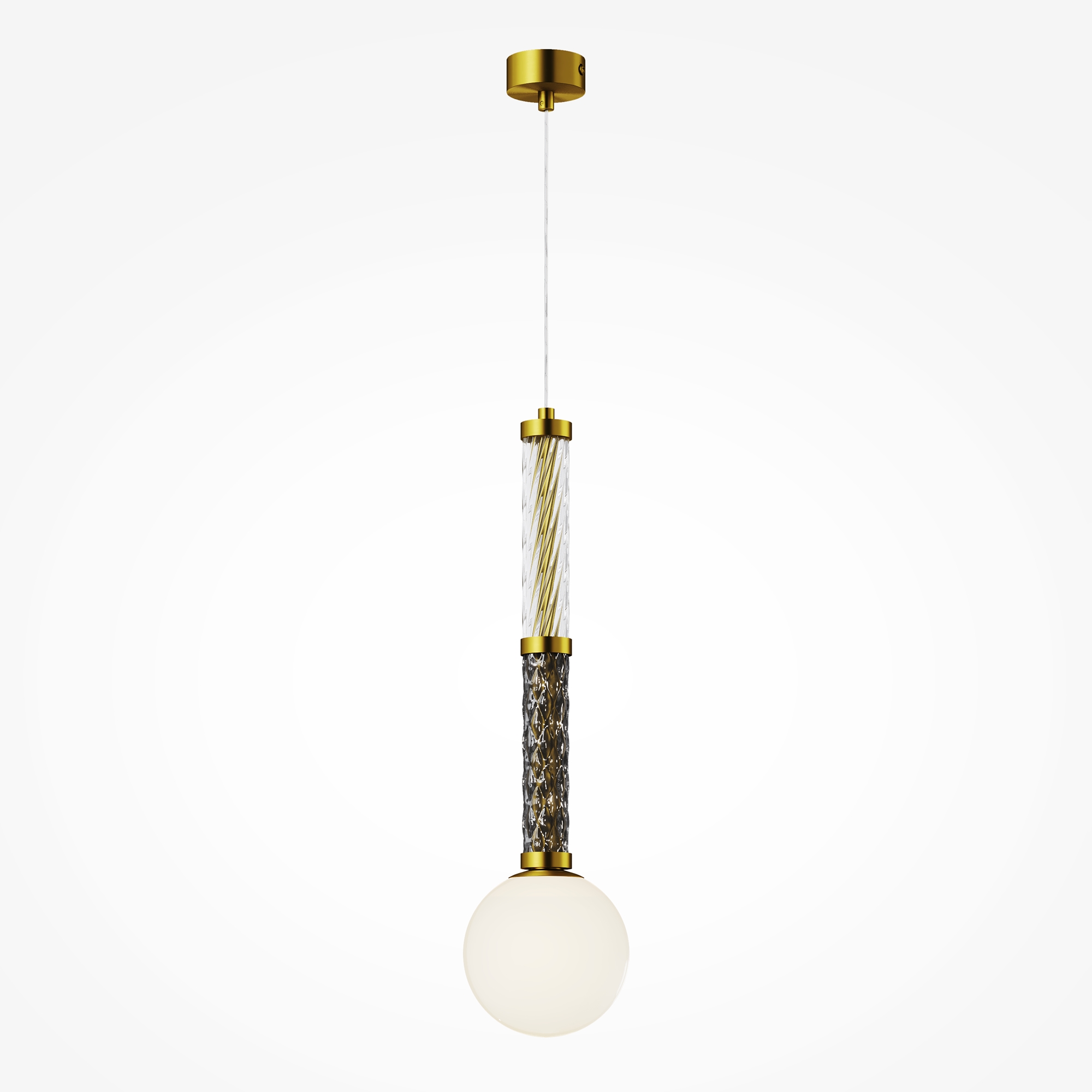 Серия в тренде massive light - массивная, но при этом изящная арматура. Металлическая арматура в цвете латуни дополняется стеклянными рельефными элементами. Три цвета стекла: прозрачный, янтарный и дымчатый с зеркальным эффектом. Плафоны из стекла белого цвета. Цоколь G9. Серию составляют универсальные подвесные светильники в двух цветах с регулируемой длиной провода, эффектная люстра и лаконичный настенный светильник. Мягкое освещение и классические пропорции для различных стилей интерьера.