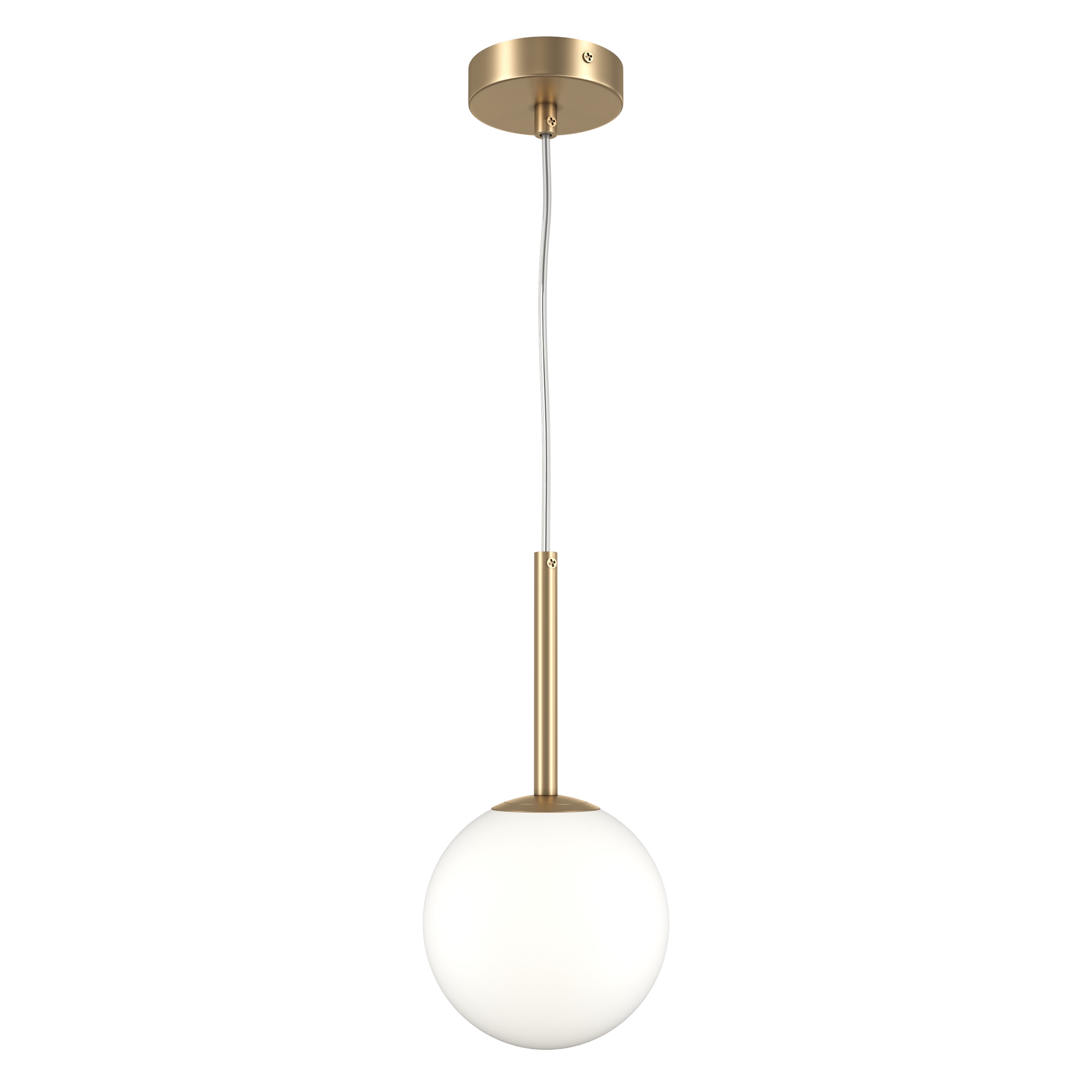 Материал арматуры – металл, цвет - золото, белый, черный. Округлые плафоны из матового белого стекла. Универсальные формы, минималистичный дизайн. Цоколь - E14. Лампы не входят в комплект. Регулируемая высота подвесных светильников.