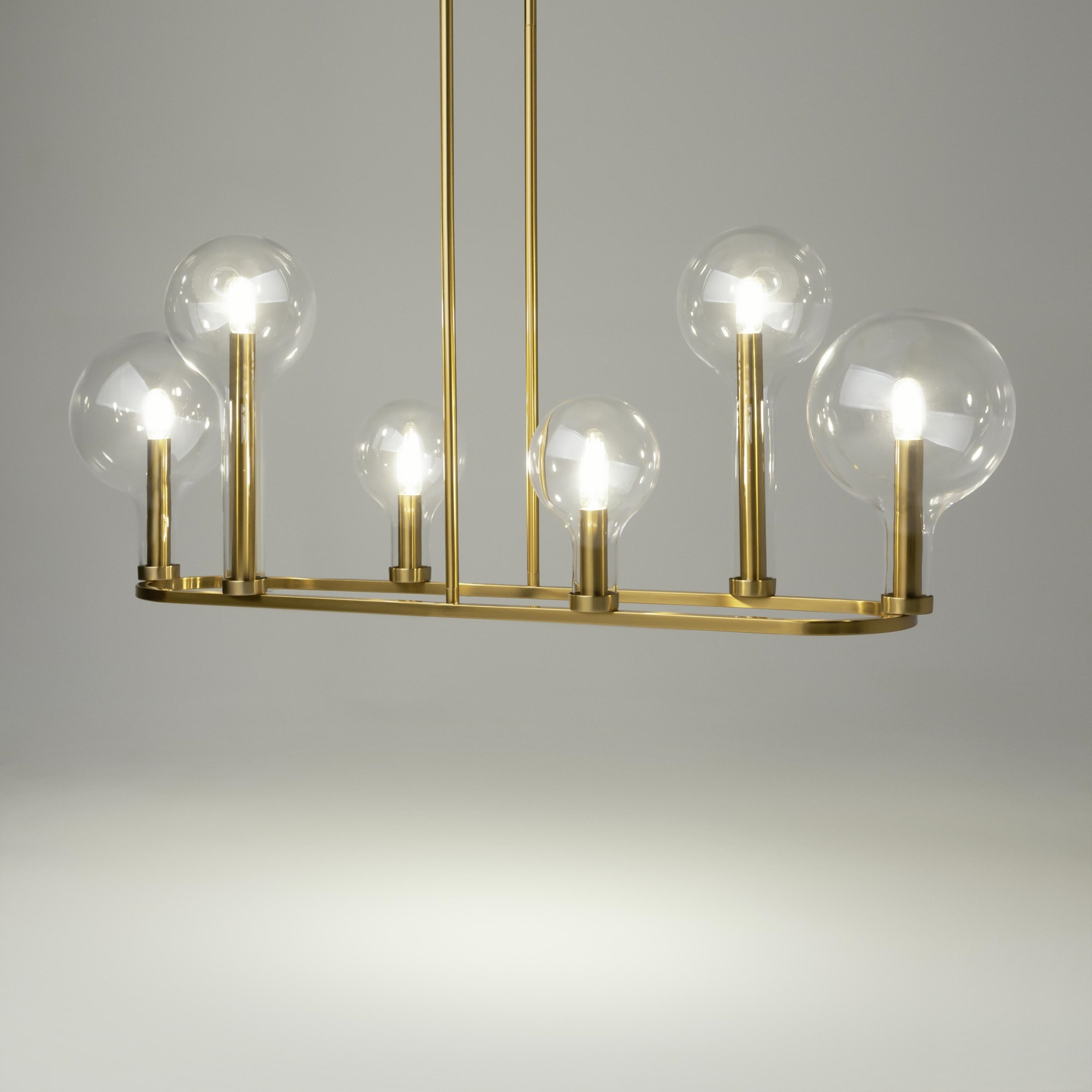 Оригинальный дизайн в американском неоклассическом стиле. Два цветовых решения: черная арматура в сочетании с белыми градиентными плафонами, арматура в цвете латуни и прозрачные плафоны. Материал арматуры — металл. Плафоны из выдувного стекла. Арочные силуэты в духе современных трендов. Подвесные светильники с регулируемой высотой и лаконичное бра. Стоит также обратить внимание на особенность источника света – к серии подходят только лампы с цоколем Е14, формы Т25.