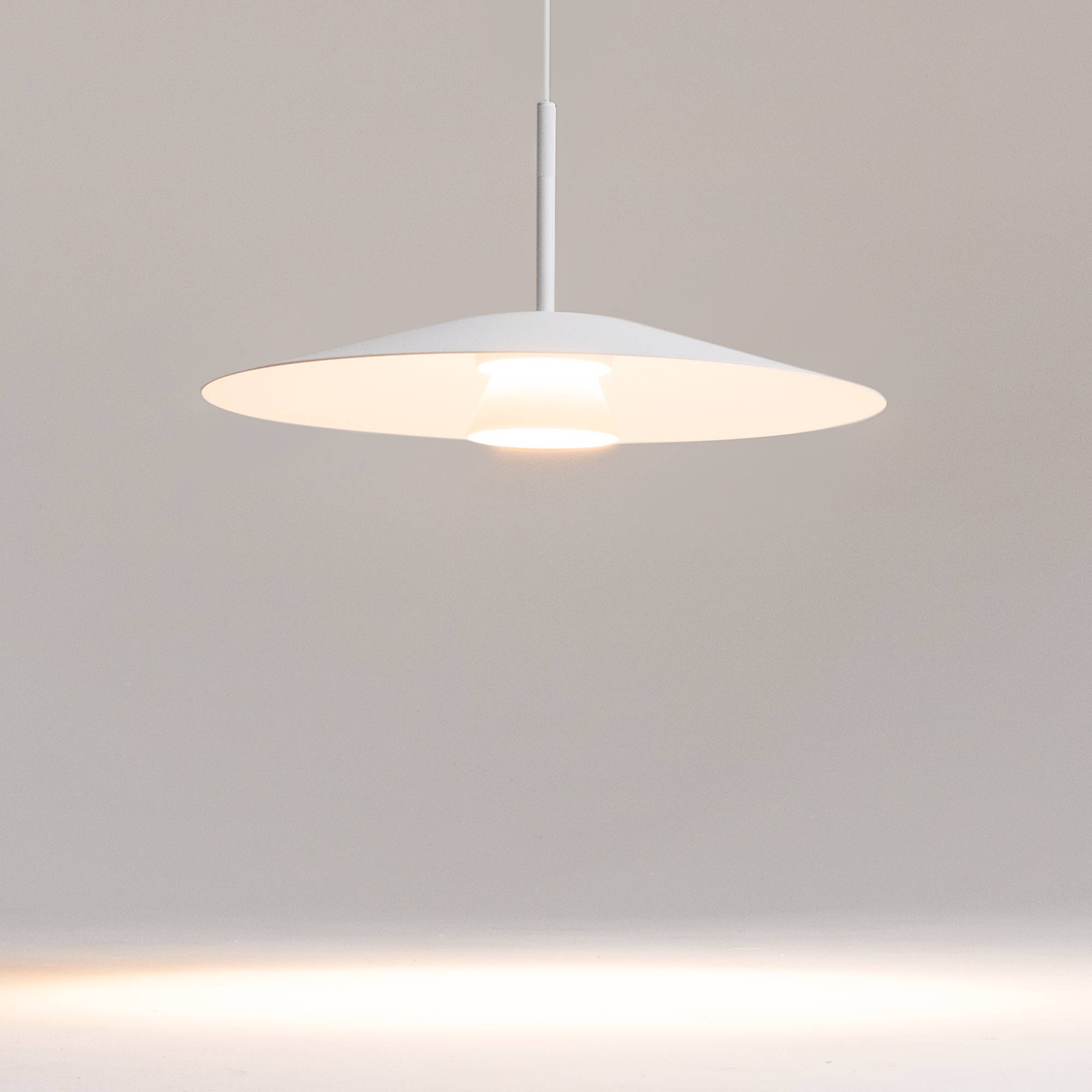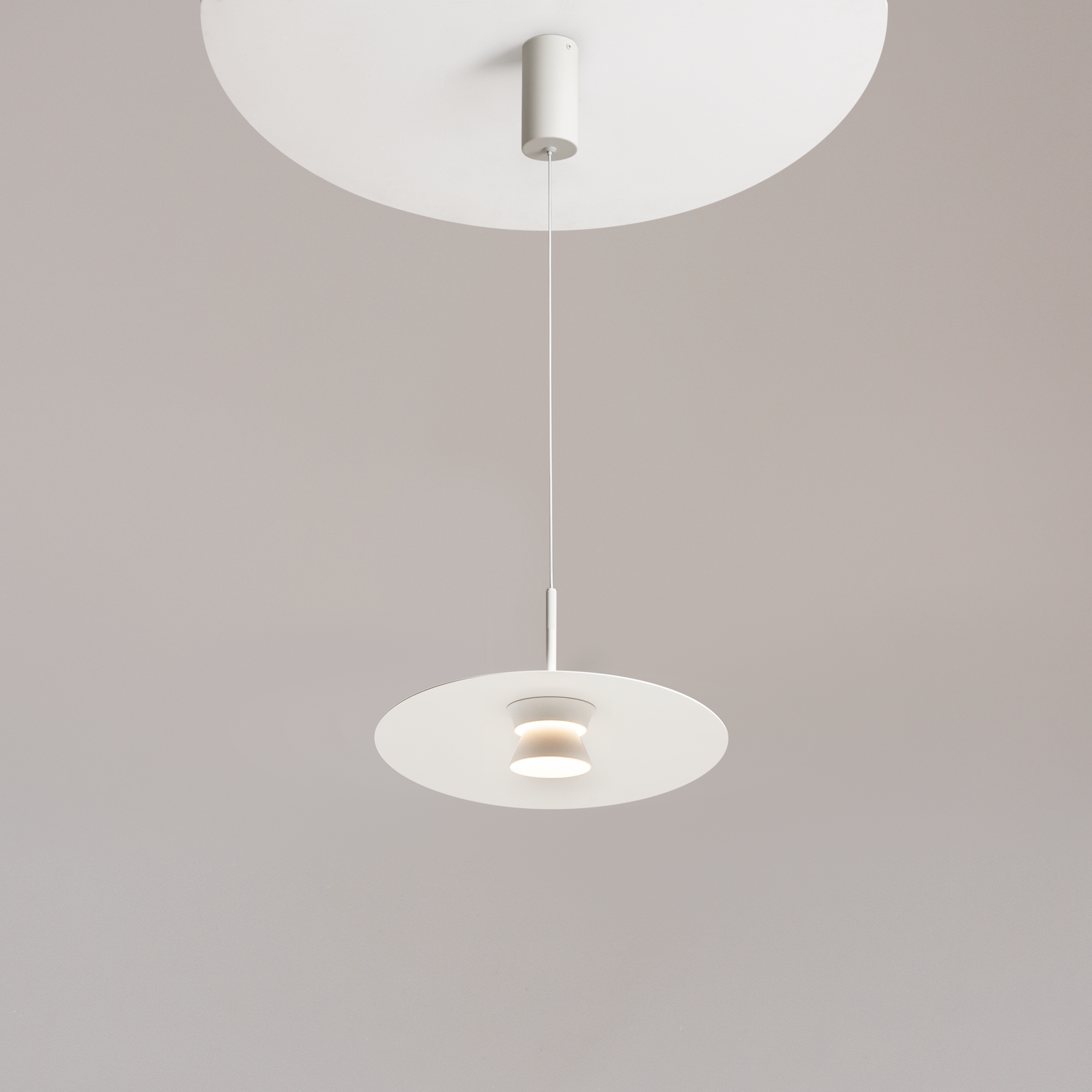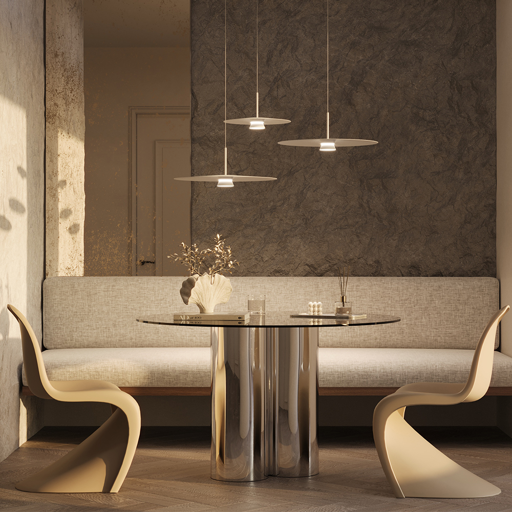 Серия Platte представлена одинарными подвесными светильниками диаметром 350 и 500 мм. Цвет металлической арматуры и плафонов – белый. Источник света – LED. Тип рассеивания — рассеянный. Цветовая температура — 3000 К. Угол рассеивания — 125°. В серии предусмотрен длинный регулируемый провод 3 м.