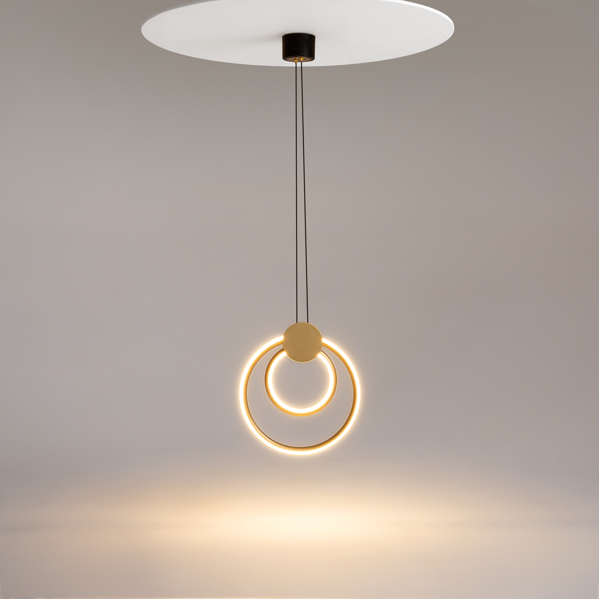Серия Link представлена подвесными и настенными светильниками с разной вариацией светодиодных колец. Арматура - из металла в цвете латунь с чёрными элементами. Источник света — LED-кольца. Цветовая температура — 3000 K. Угол рассеивания — 125 градусов. Провод регулируемый, 3 метра.
