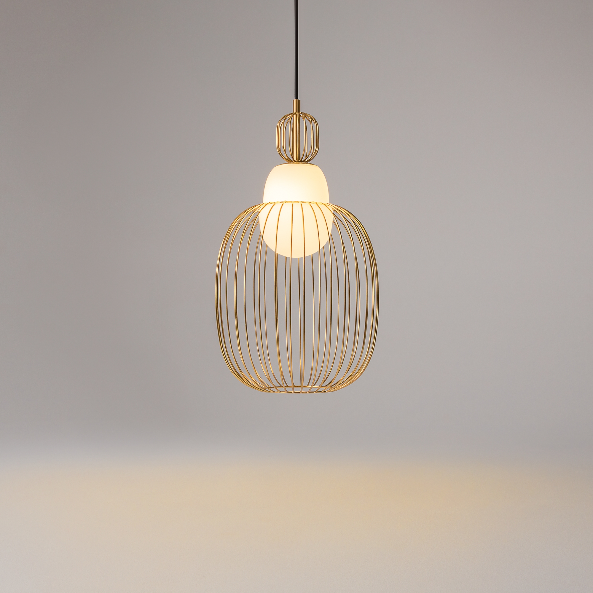 Цвет арматуры — латунь. Материал арматуры — металл. Абажур — каркас из проволоки, стекло. Оригинальный дизайн с эффектом левитации. Стеклянный рассеиватель со специальным выступом для крепления проволочного плафона. Два типа подвесных светильников: компактные со сменными лампами и крупный с LED-модулем для двунаправленного освещения. Провод длиной 3 метра для высоких потолков. Регулируемая высота подвеса. Универсальный дизайн для неоклассики, эклектики и фьюжн.