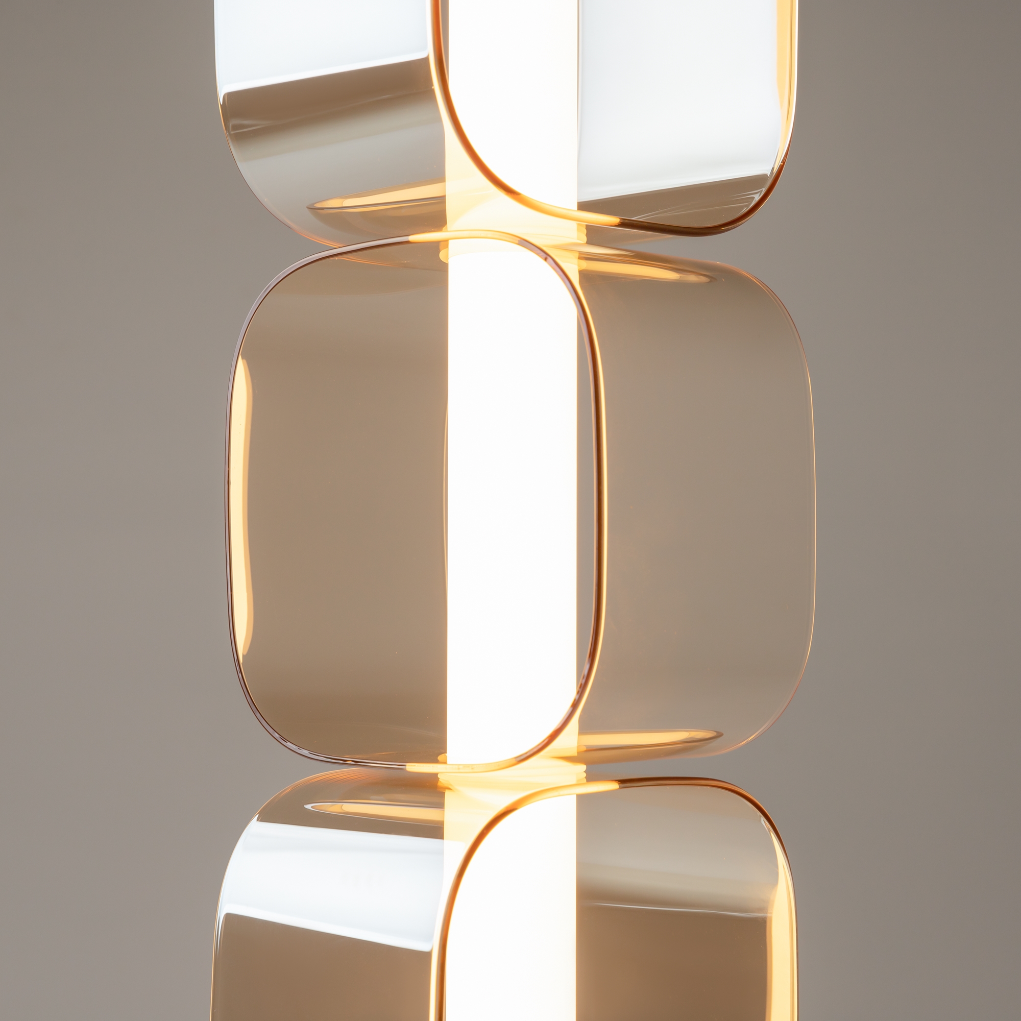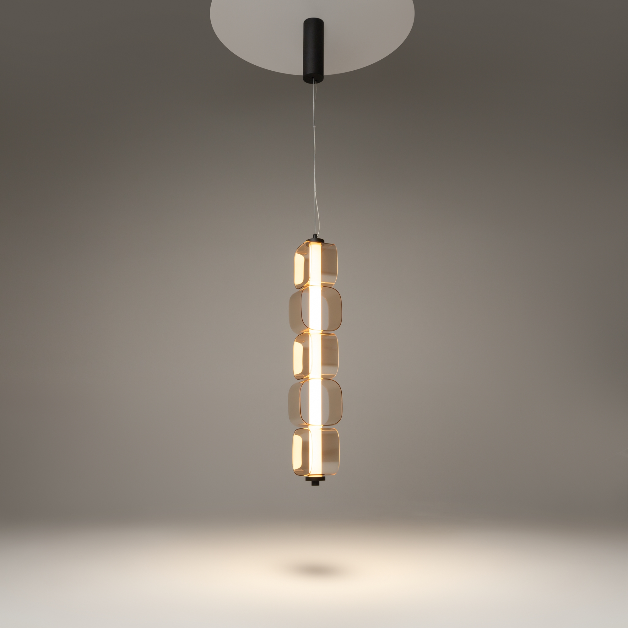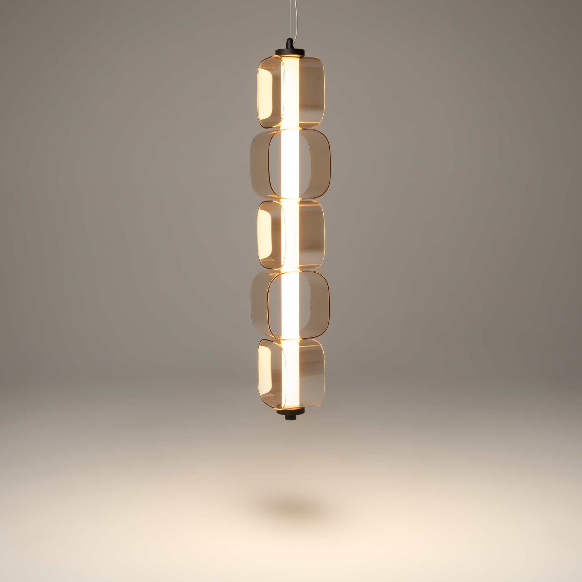 Дизайнерская серия, созданная в коллаборации с Британской Высшей школой Дизайна. Вдохновлена концепцией ритма Леонардо да Винчи. Два цветовых решения: янтарное стекло в сочетание с арматурой в черном цвете с сэнди-эффектом, серое тонированное стекло в сочетании с арматурой с глянцевым хромированным покрытием. LED-источник света скрытый матовым акриловым рассеивателем. Два типа подвесных светильников: одиночный и горизонтальный. Регулируемая высота подвеса и провод длиной 3 метра. Возможность создания композиций.