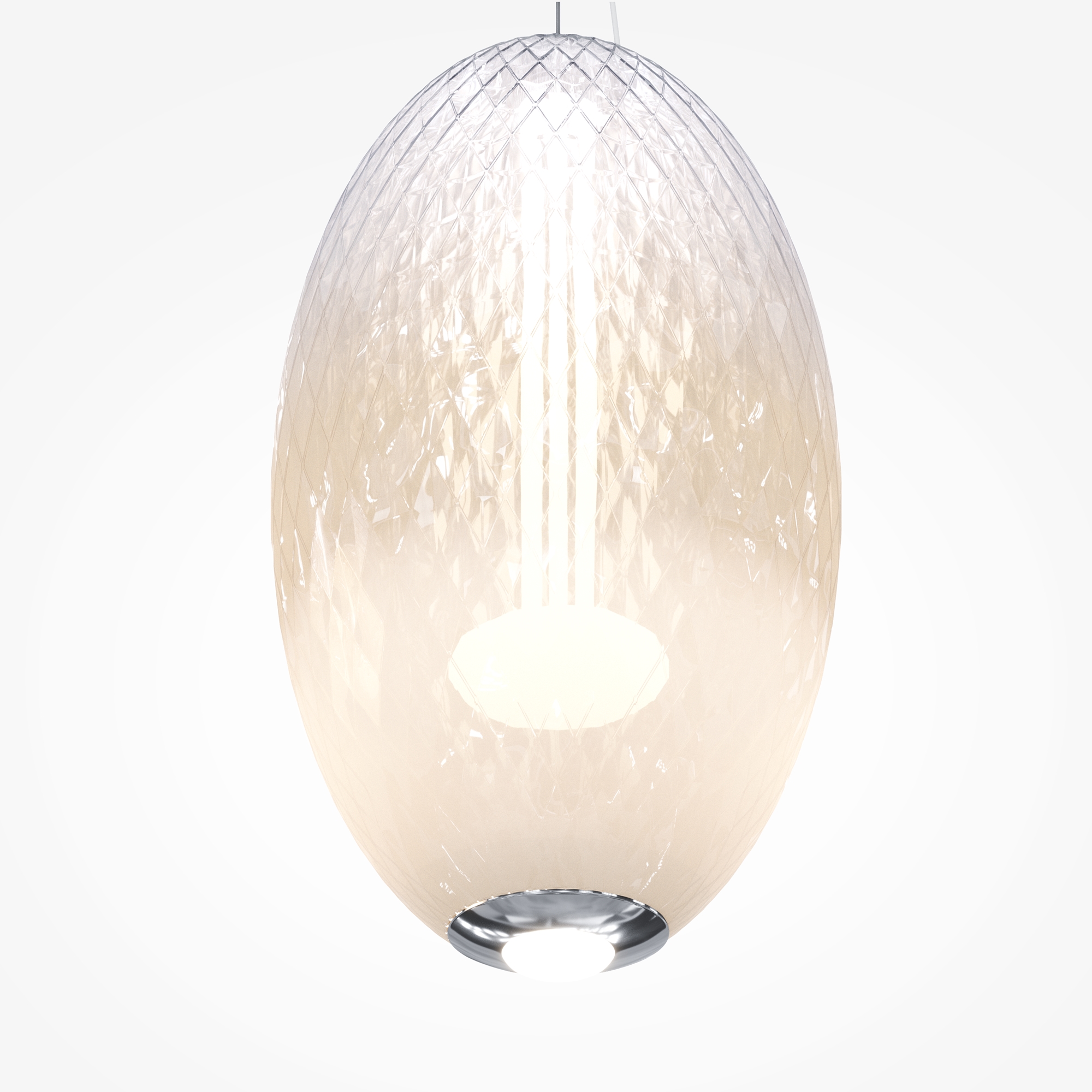 Подвесные светильники серии Bruma представлены в двух дизайнах: арматура глянцевый хром с белым стеклянным плафоном с нанесённым изнутри рельефом; черная арматура с антибликовым покрытием и черный плафон с наружным рельефом. Градиент на стекле от белого или черного к прозрачному. LED-источник света (3000K) имеет два направления: рассеянный и направленный. Подвесные светильники Bruma дополнят большинство современных интерьеров как в качестве одиночного акцента, так и в композиции друг с другом.