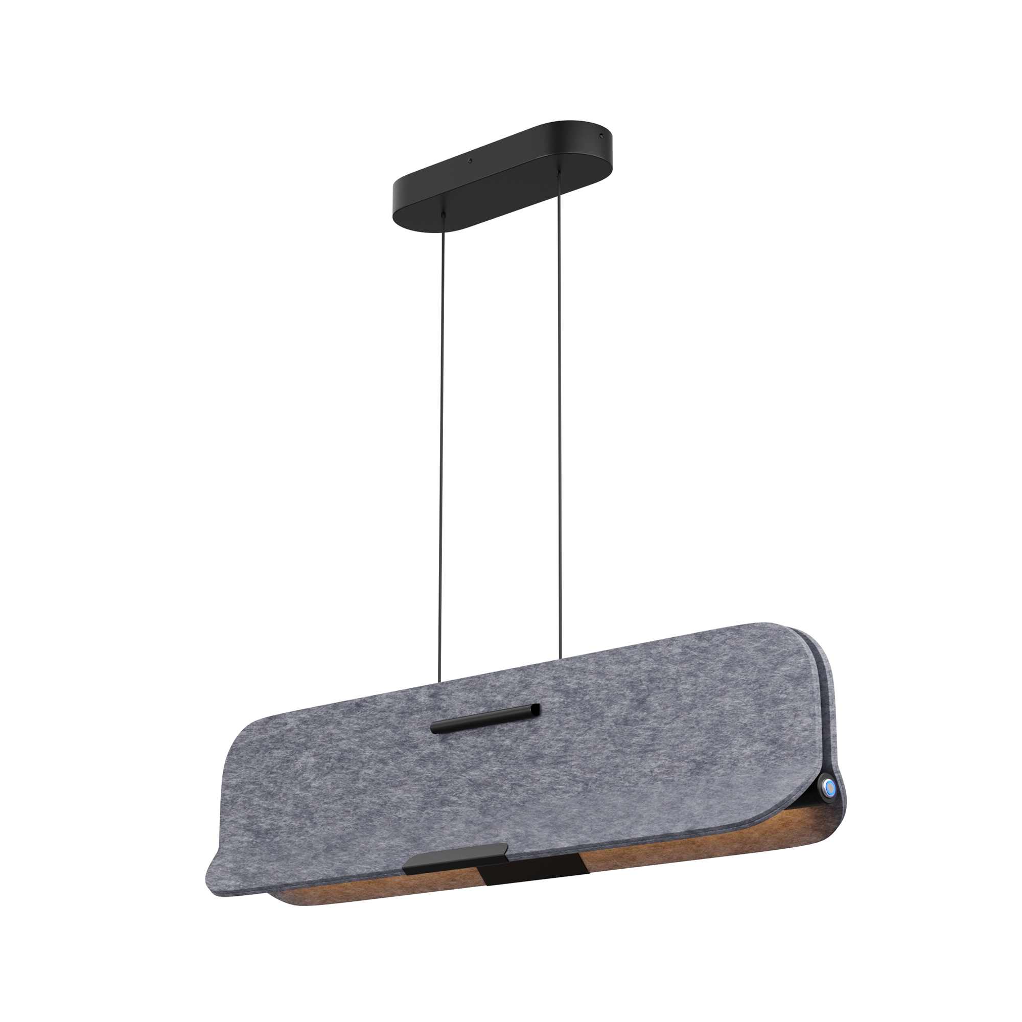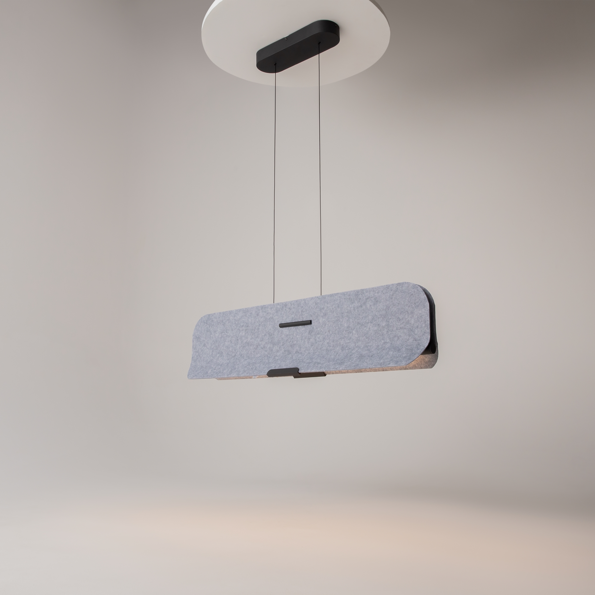 Серия Optimista предназначена для создания функционального и комфортного пространства как в рабочих зонах, так и в домашней обстановке. В основе дизайна – натуральный фетр, который поможет улучшить акустику помещения. Одна из ключевых особенностей горизонтального подвеса – установленный лифтовый механизм для регулировки высоты светильника (длина провода 2 метра). LED-источник (3000K) излучает направленный на поверхность световой поток 1350лм. Светильник также оснащен кнопкой включения на корпусе.