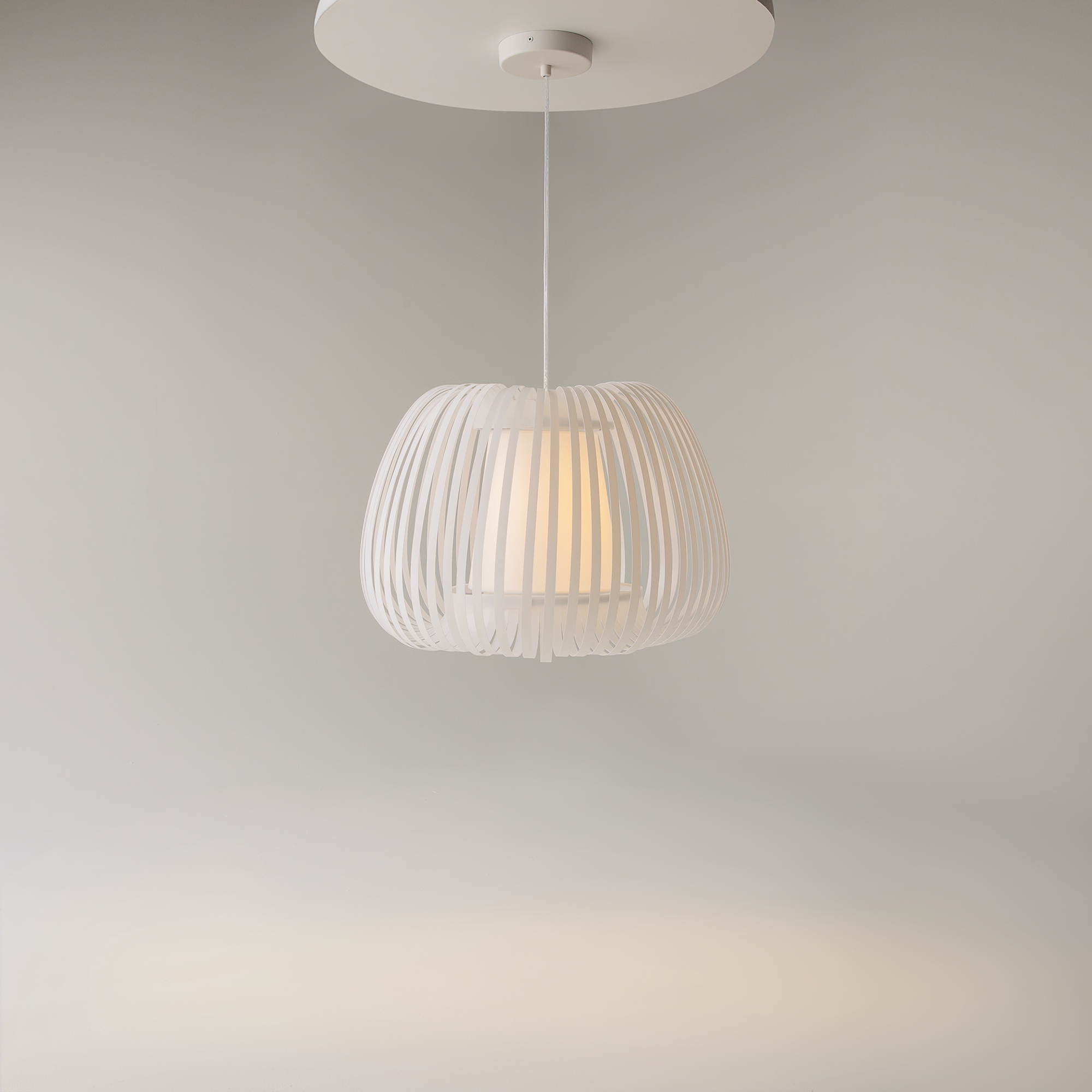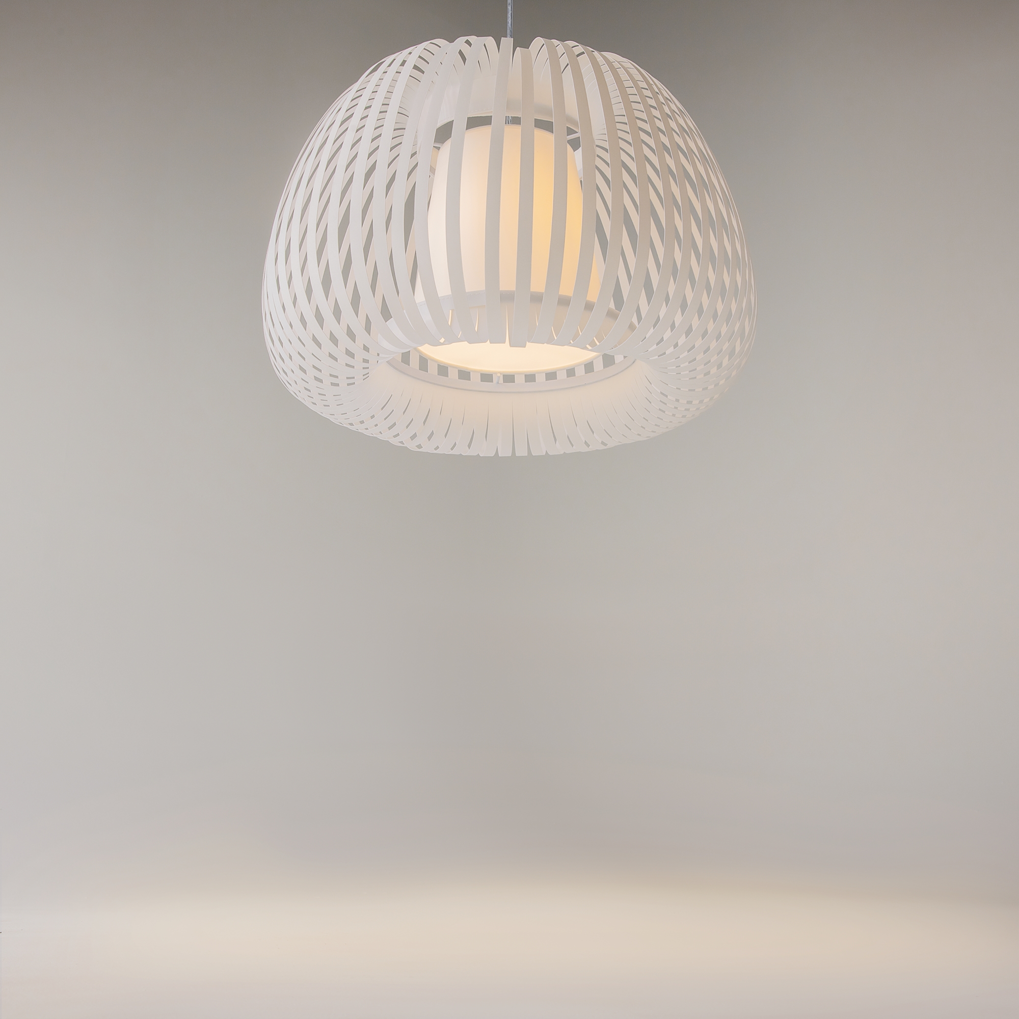 Серия Kirigami выделяется необычным подходом к декорированию абажуров. Тонко нарезанные полоски органзы собраны в куполообразный абажур. Светильники представлены в двух цветах: монохромный белый и контрастный черный. Хлопковый рассеиватель скрывает сменный источник с цоколем Е27. Металлическая арматура подвесных светильников и настольной лампы окрашена в белый цвет с антибликовым покрытием. Простая палитра и оригинальный дизайн универсальны для большинства интерьеров: от минимализма до фьюжн.