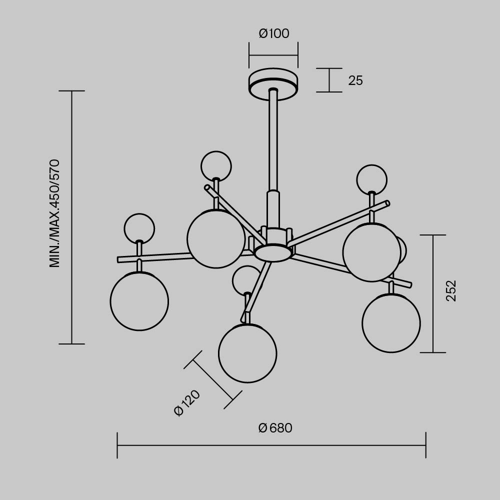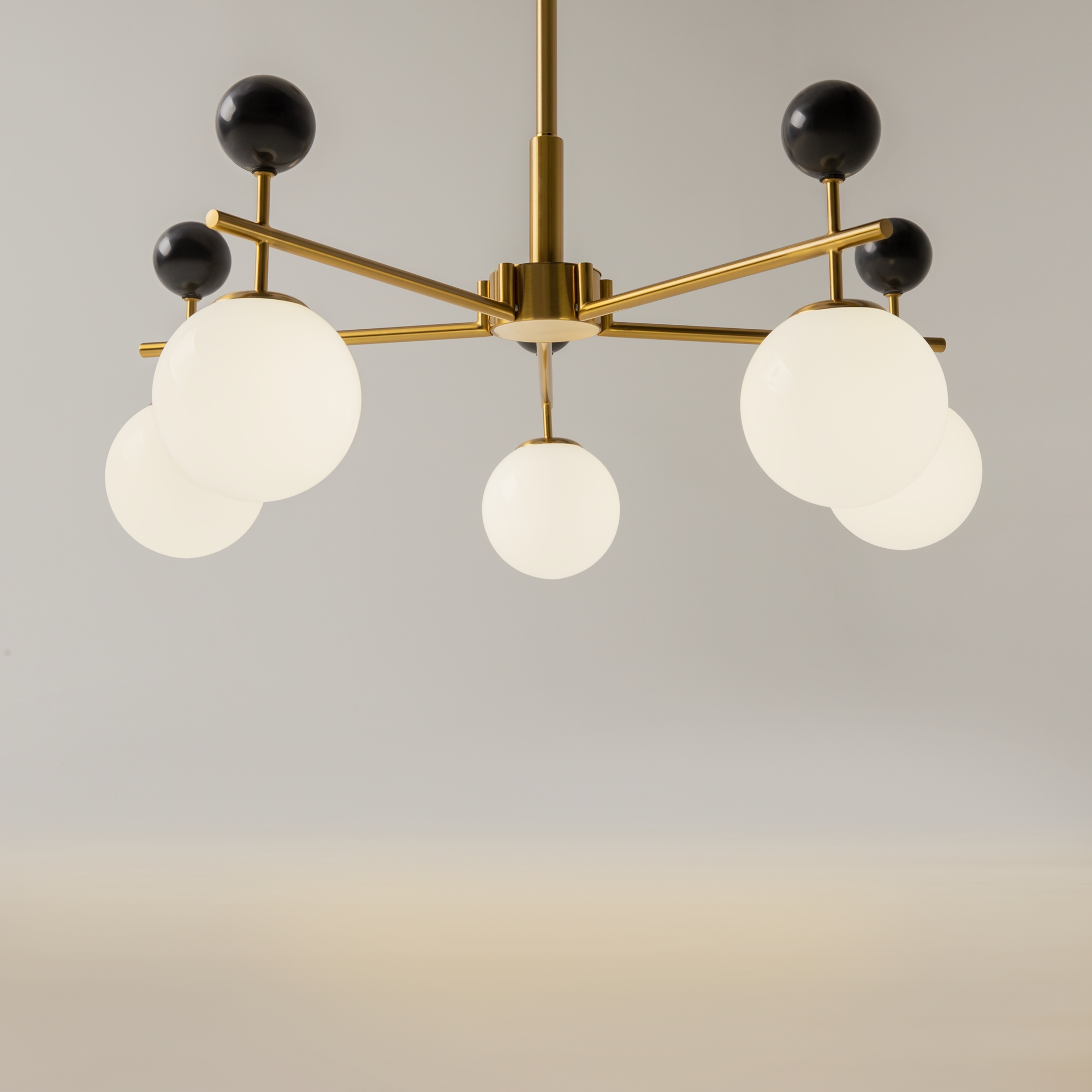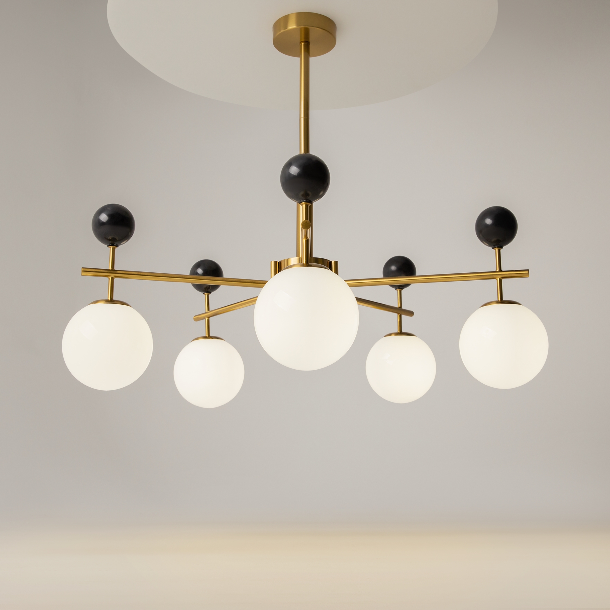 Серия Museo — это классика, переплетенная с современными тенденциями. В серии представлены подвесные светильники на 5 и 7 плафонов, а также настенный светильник (бра). Декоративные шары из натурального черного мрамора. Стеклянные плафоны из глянцевого белого стекла. Металлическая арматура светильников в цвете сатинированной латуни. Высота люстры регулируется разборной штангой. Сменный источник света с цоколем G9. Акцентная и яркая серия Museo создает эффектный визуальный контраст в интерьере.