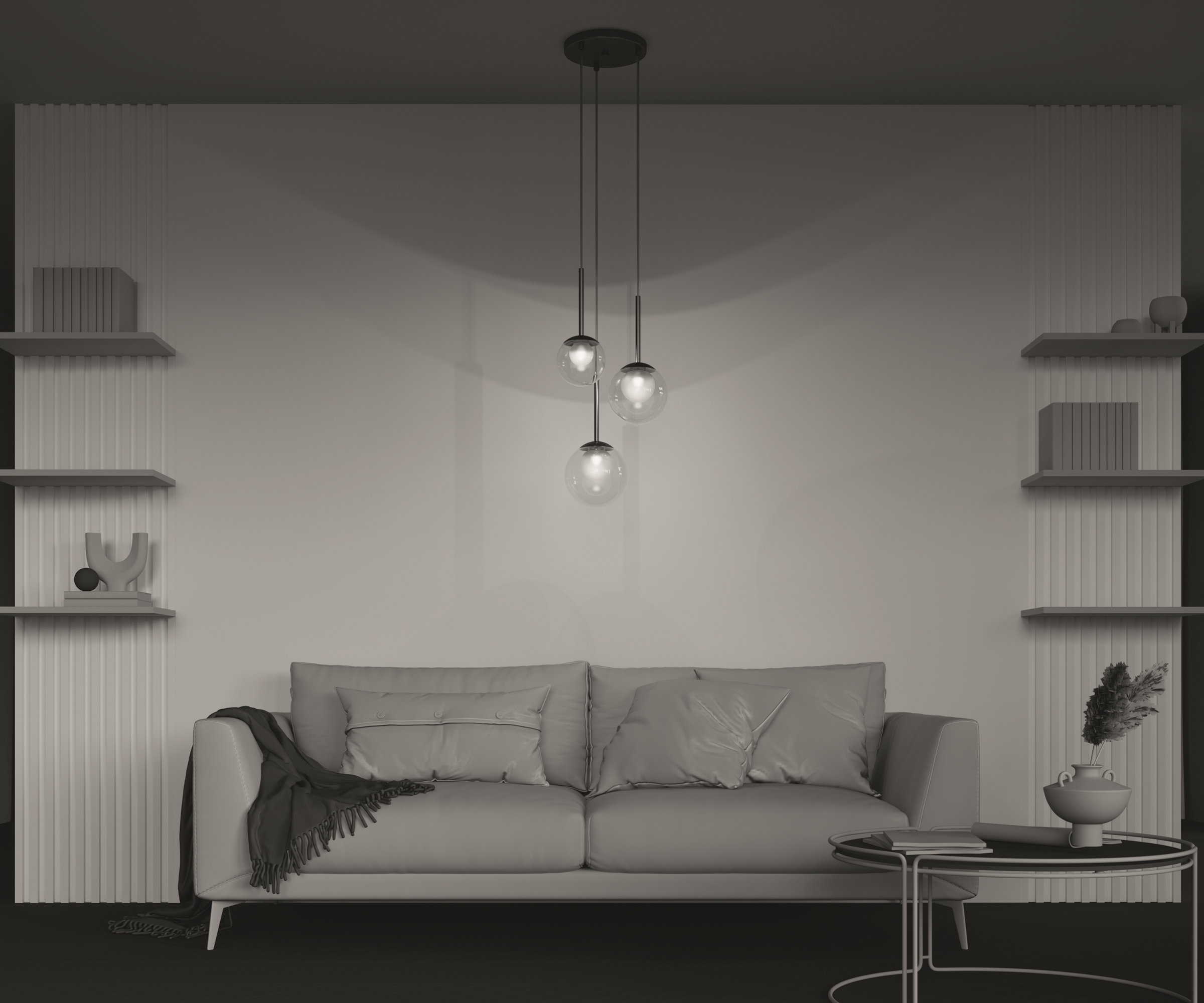 Материал арматуры – металл, цвет - золото, белый, черный. Округлые плафоны из матового белого стекла. Универсальные формы, минималистичный дизайн. Цоколь - E14. Лампы не входят в комплект. Регулируемая высота подвесных светильников.