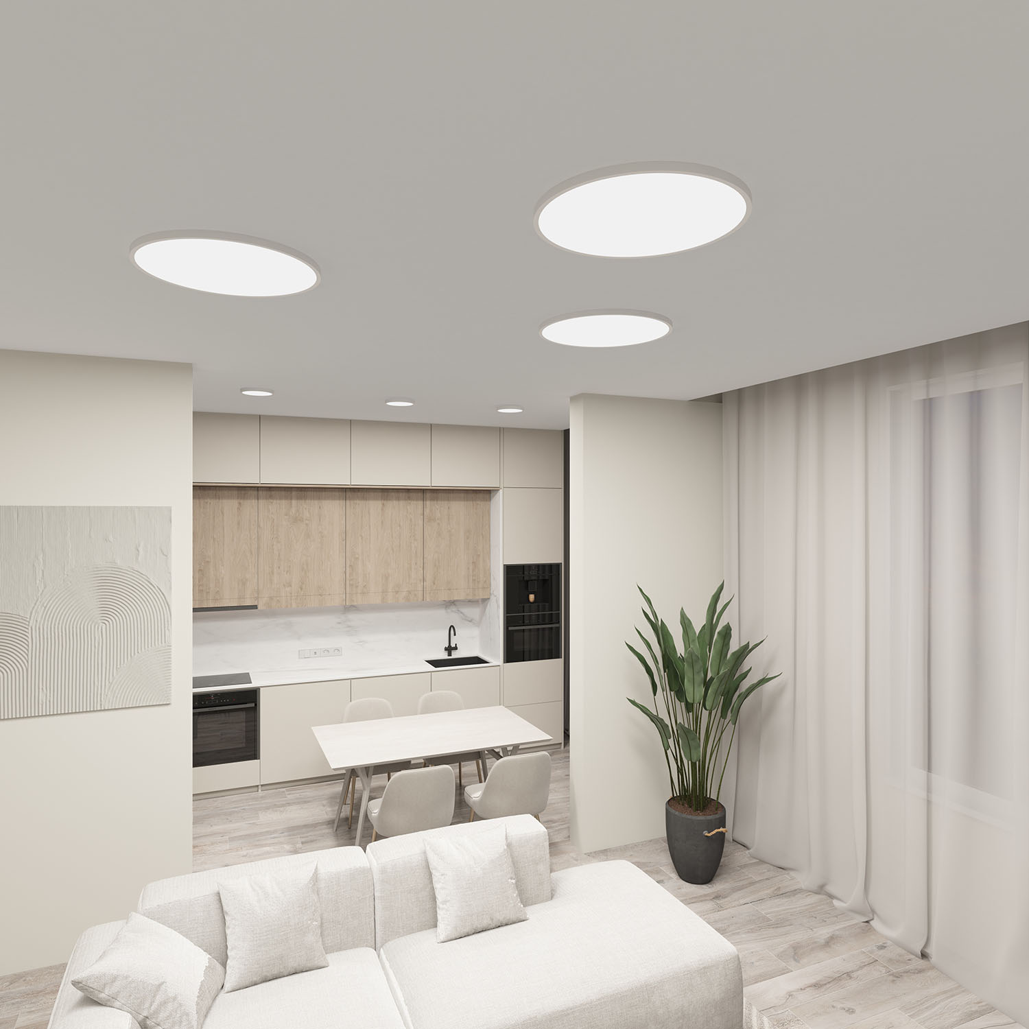 Серия накладных потолочных светильников с переключателем цветовой температуры на корпусе для основного освещения. Переключатель позволяет установить один из трех режимов цветовой температуры - 3000К, 4000К, 6500К. Толщина светильника составляет всего 25 мм. Рассеиватель изготовлен из матового акрила. Срок гарантии 3 года.