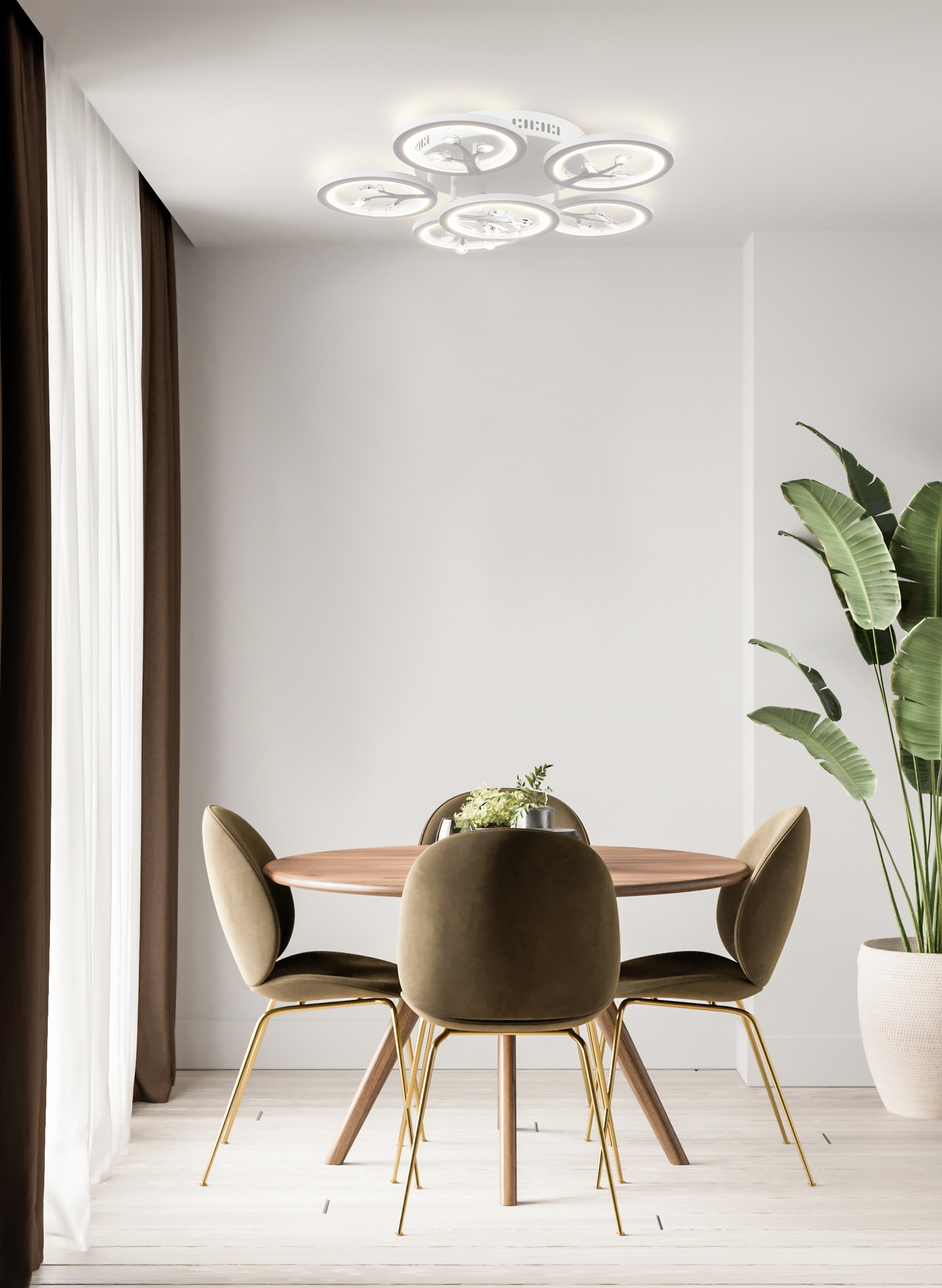 Природные формы остаются неизменным источником вдохновения для дизайнеров. Серия Bodge – именно такой случай. Она сочетает современную функциональность и очаровательный флористический декор. Светильник выполнен из металла и акрила, что гарантирует надежность и долгий срок службы. Белый цвет подчеркивает визуальную легкость композиции и освежает интерьер. Сферическая форма плафонов выглядит воздушной и невесомой благодаря декоративным элементам цветочной тематики. Современные LED-источники дарят мягкое, комфортное для зрения освещение. Кроме того, они долговечны и экономят электроэнергию. Потолочная люстра идеально подходит для гостиных, спален и кухонь с невысокими потолками. Эклектичный дизайн расширяет сферу применения светильника: он подойдет как для хай-тека и техно, так и для более сдержанных стилей – минимализма и сканди.
